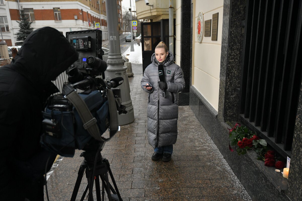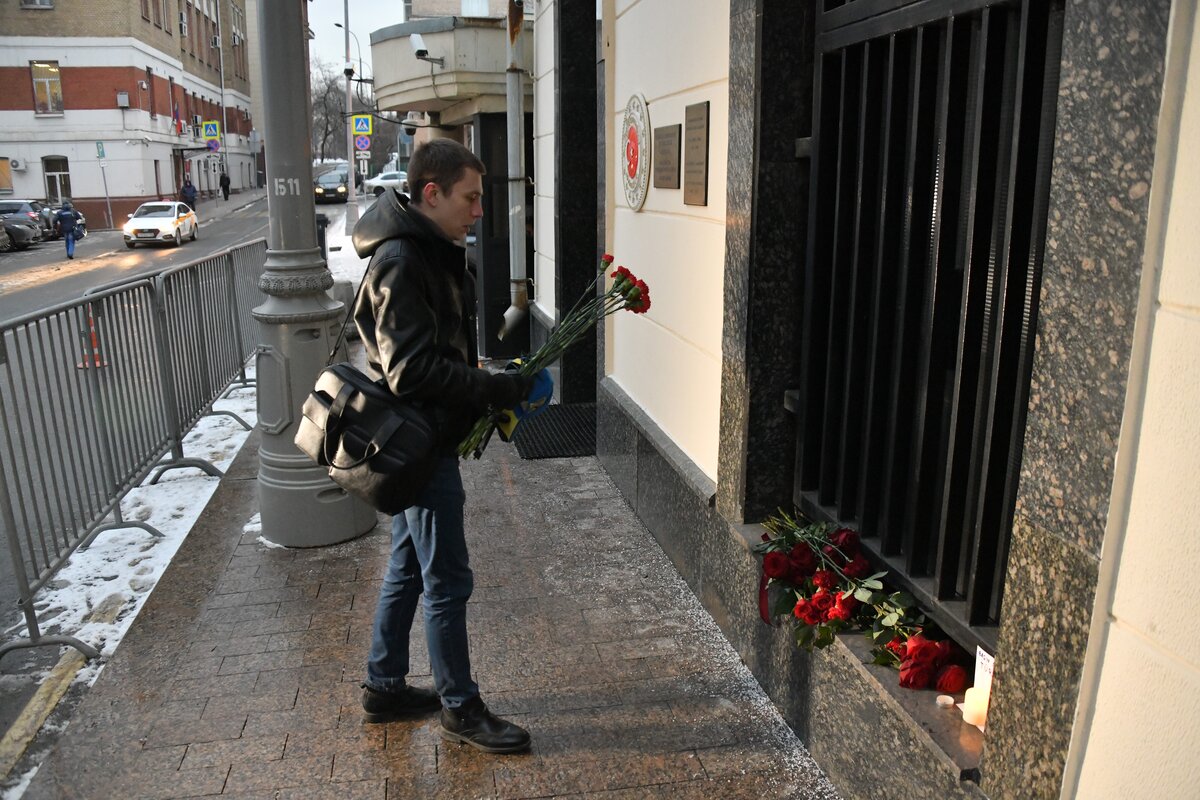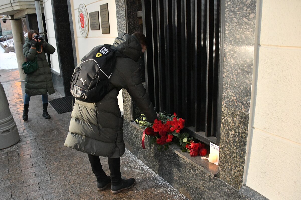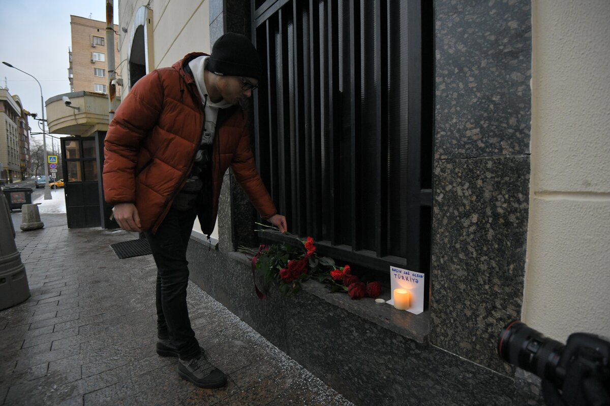 В миреМосквичи принесли цветы к посольству Турции в знак скорби по жертвам землетрясения