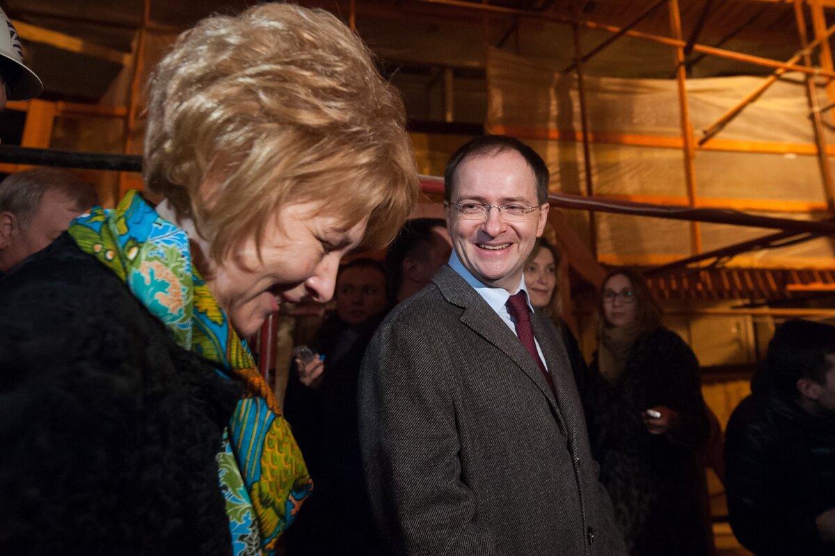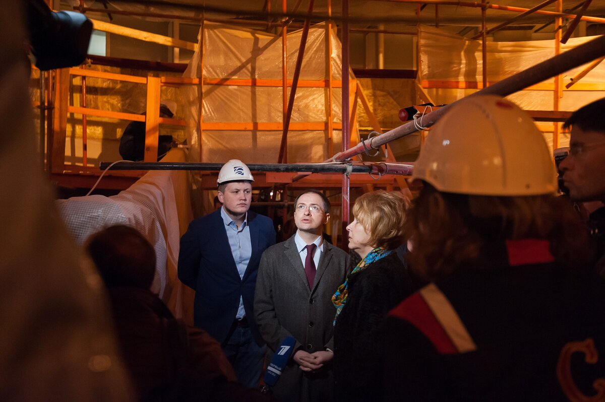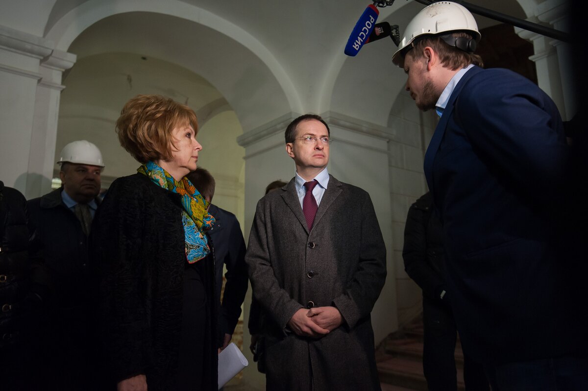 4 апреля министр культуры РФ Владимир Мединский проверил ход реконструкции Государственного академического Малого театра. В мероприятии также приняли участие художественный руководитель театра, народный артист СССР Юрий Соломин, генеральный директор театра Тамара Михайлова, а также представители подрядной организации.