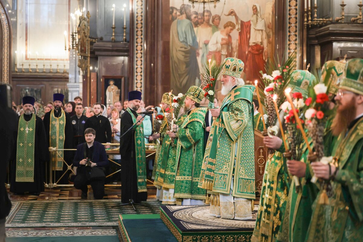 В канун праздника Входа Господня в Иерусалим, 4 апреля, святейший Патриарх Московский и всея Руси Кирилл совершил всенощное бдение в кафедральном соборном храме Христа Спасителя в Москве.