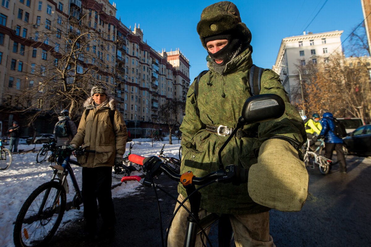Свежий воздухВторой зимний велопарад прошел в Москве. Фото