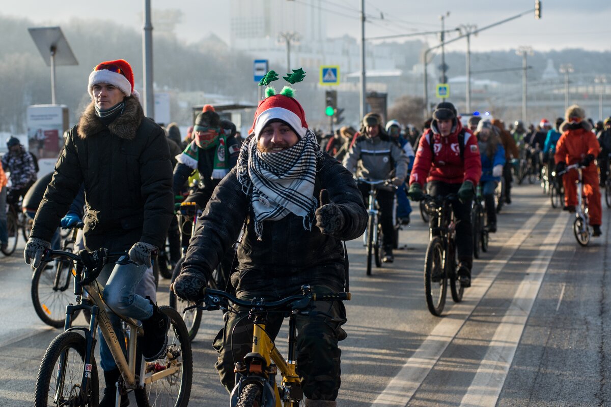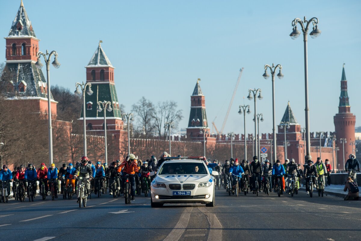 Второй зимний Московский велопарад прошел в столице 8 января. В мероприятии приняли участие более 500 человек, несмотря на сильные морозы. Заезд прошел по набережным Москвы-реки до Кремля и обратно.