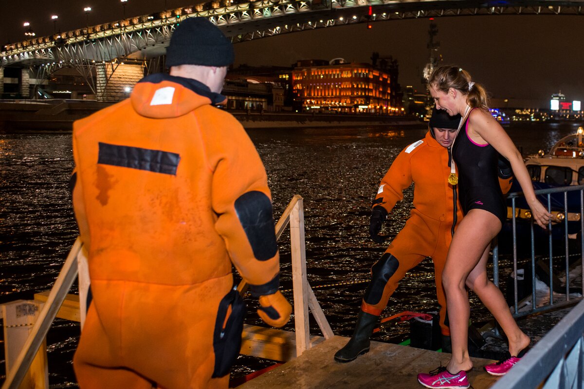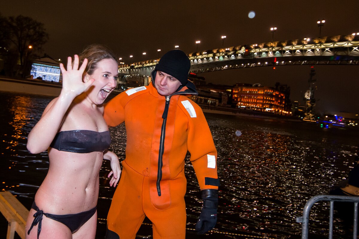 Вечером 19 января в центре Москвы состоялось уникальное в России спортивное мероприятие – первый Крещенский Забег с купелью на финише. Все участники забега пробежали по живописной набережной Москвы-реки – от главного Храма Христа Спасителя и обратно по Пречистенской, Фрунзенской и Лужнецкой набережным.