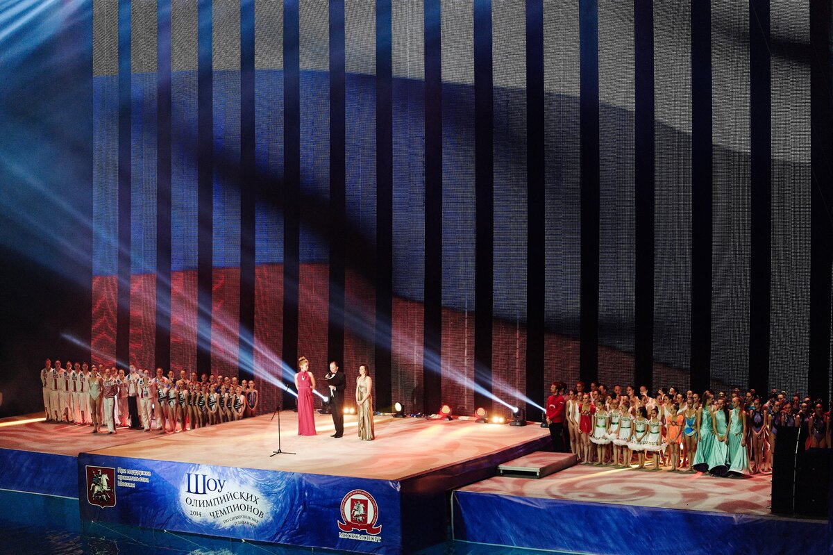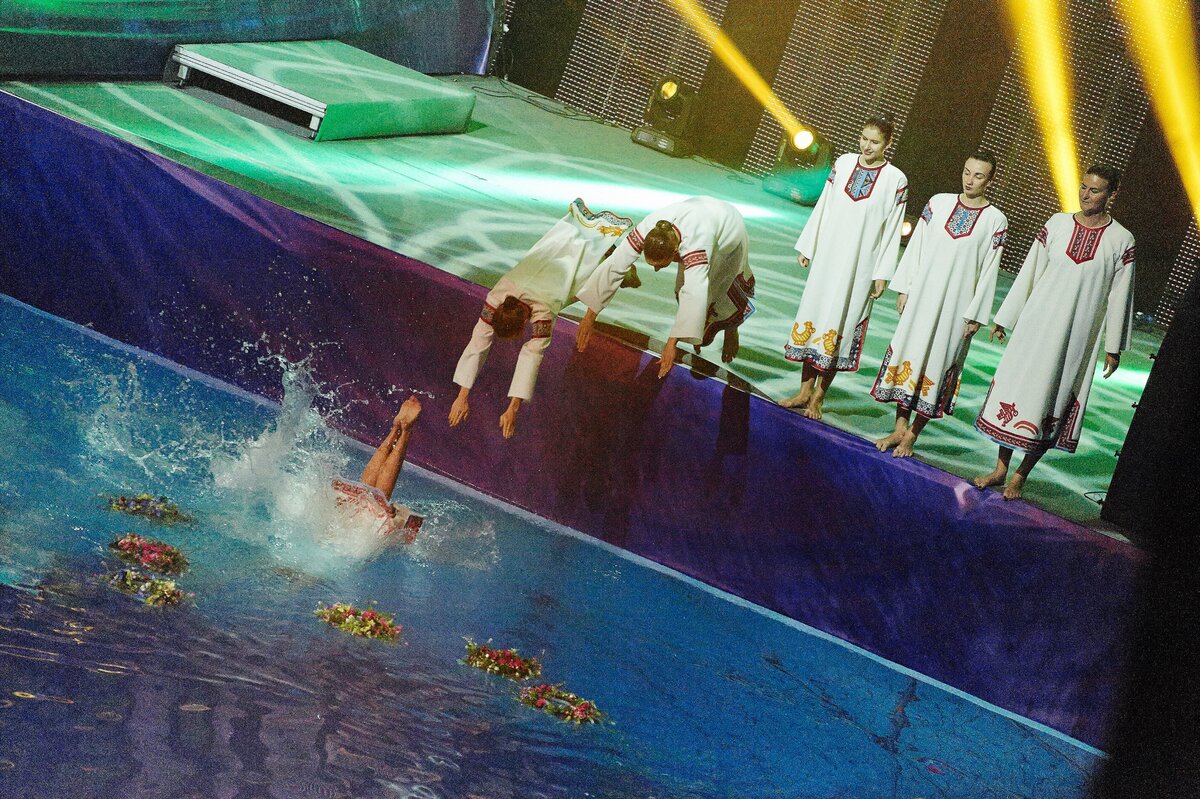 В бассейне спортивного комплекса "Олимпийский" в одиннадцатый раз прошло "Шоу Олимпийских Чемпионов по синхронному плаванию". В мероприятии приняли участие звезды спорта, артисты различных жанров, юные воспитанники спортивных школ. Основной темой шоу стал проходящий в России Год культуры.
