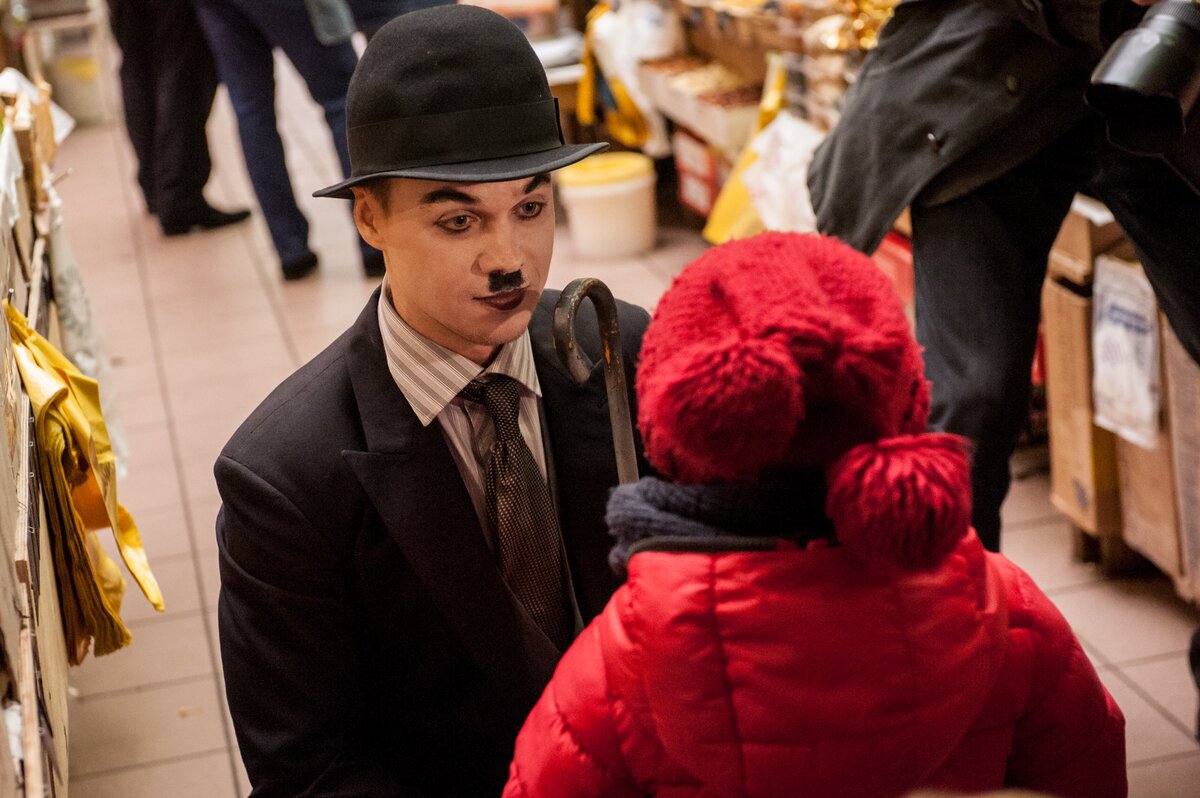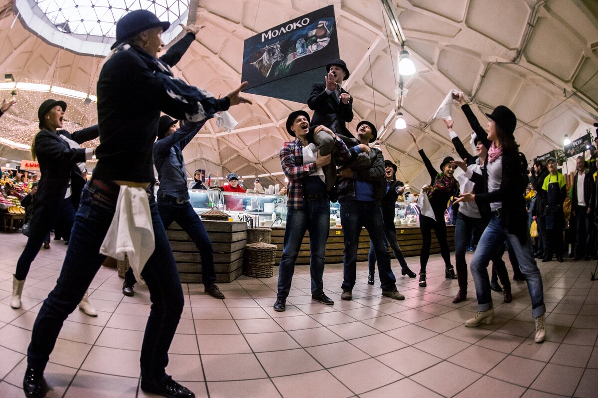 Актеры мюзикла "Чаплин" выступили на Даниловском рынке