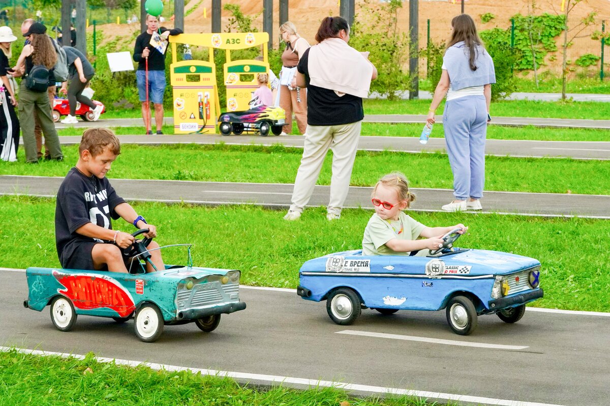 Для детей и семей организовали зону с ретро и электромобилями, трассу для радиоуправляемого дрифта и виртуальные активности.
