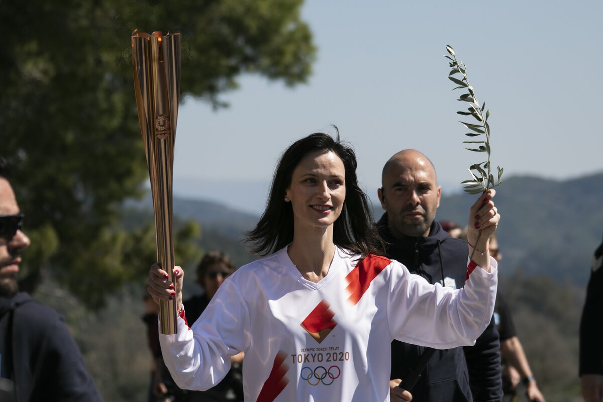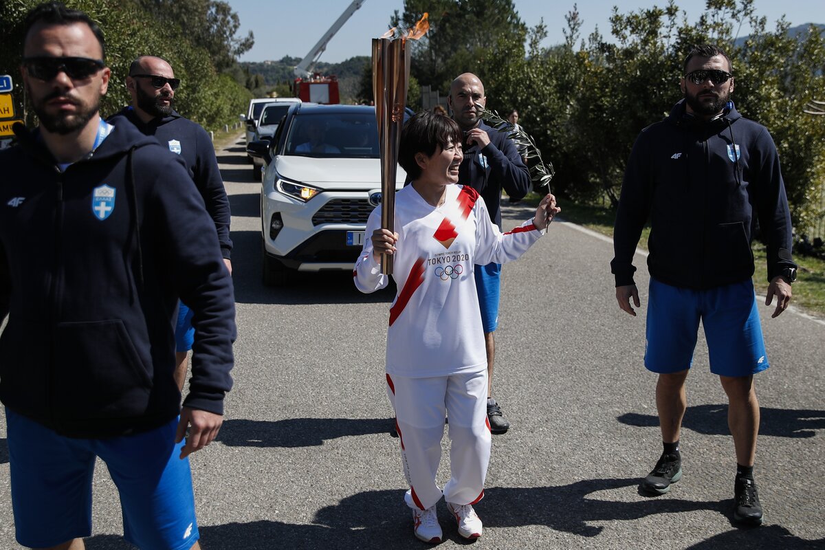 Коракаки передала факел Мизуки Ногучи – победительнице женского марафона на Олимпиаде 2004 года в Афинах. Она стала первой японской спортсменкой, которая приняла участие в эстафете 8/10 Фото: AP/Thanassis StavrakisФото: AP/Thanassis Stavrakis