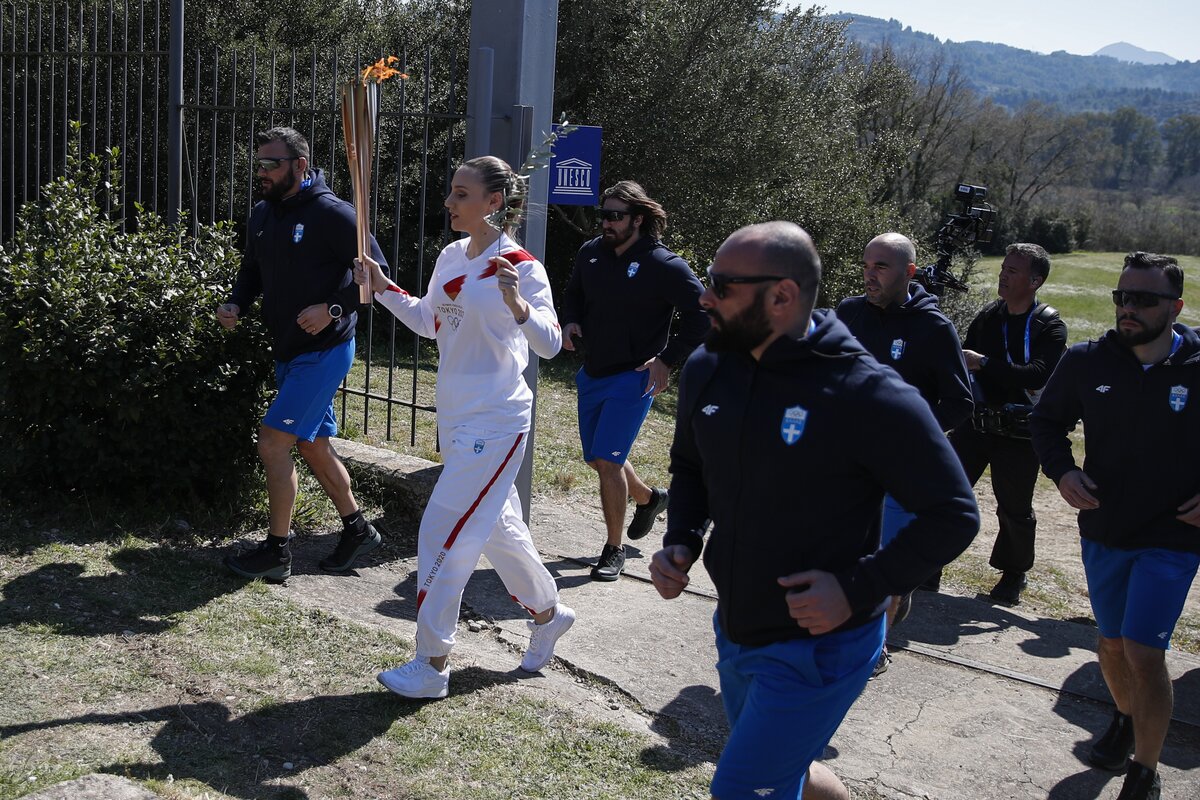 После этой исторической церемонии огонь выносится на древний стадион 5/10 Фото: AP/Thanassis StavrakisФото: AP/Thanassis Stavrakis