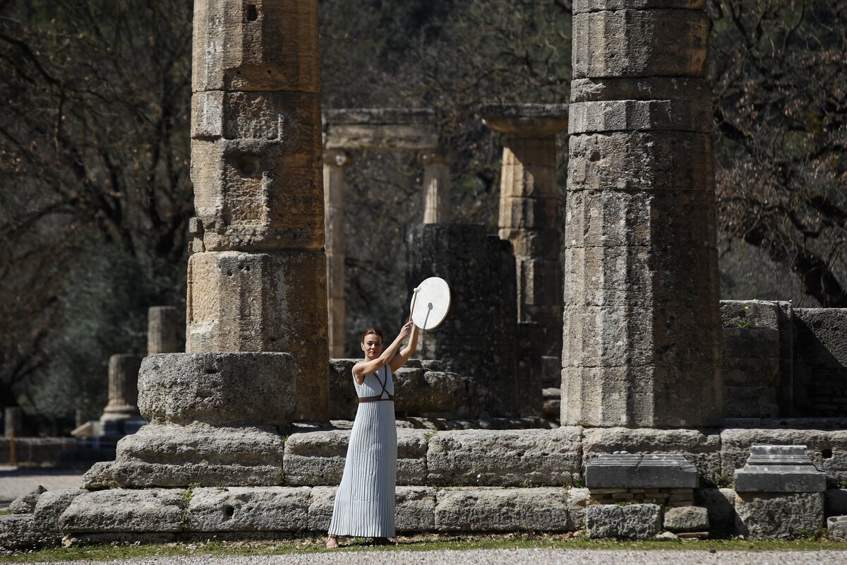 Верховная жрица должна произнести молитву Аполлону, чтобы он послал лучи солнца и зажег Олимпийский огонь