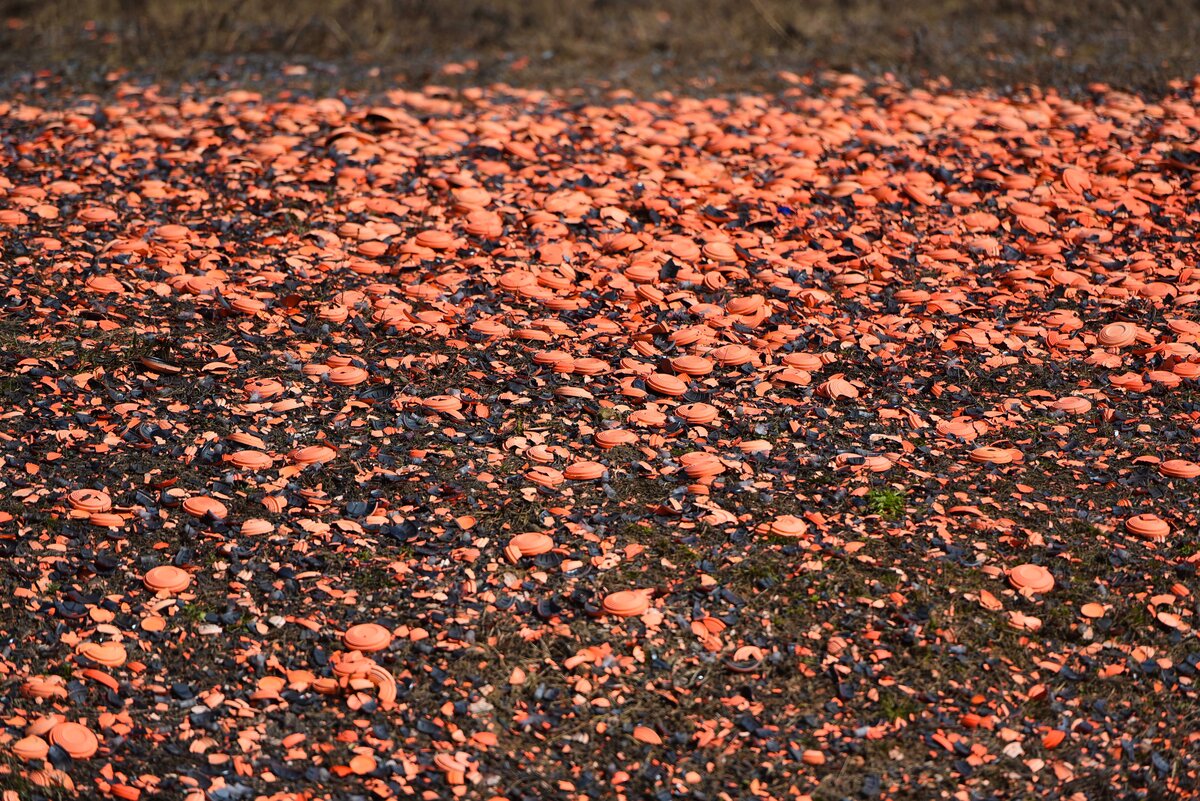 После того, как завершаются соревнования, земли из-под сбитых мишеней почти не видно, поскольку полигон почти целиком окрашивается в оранжевый цвет.