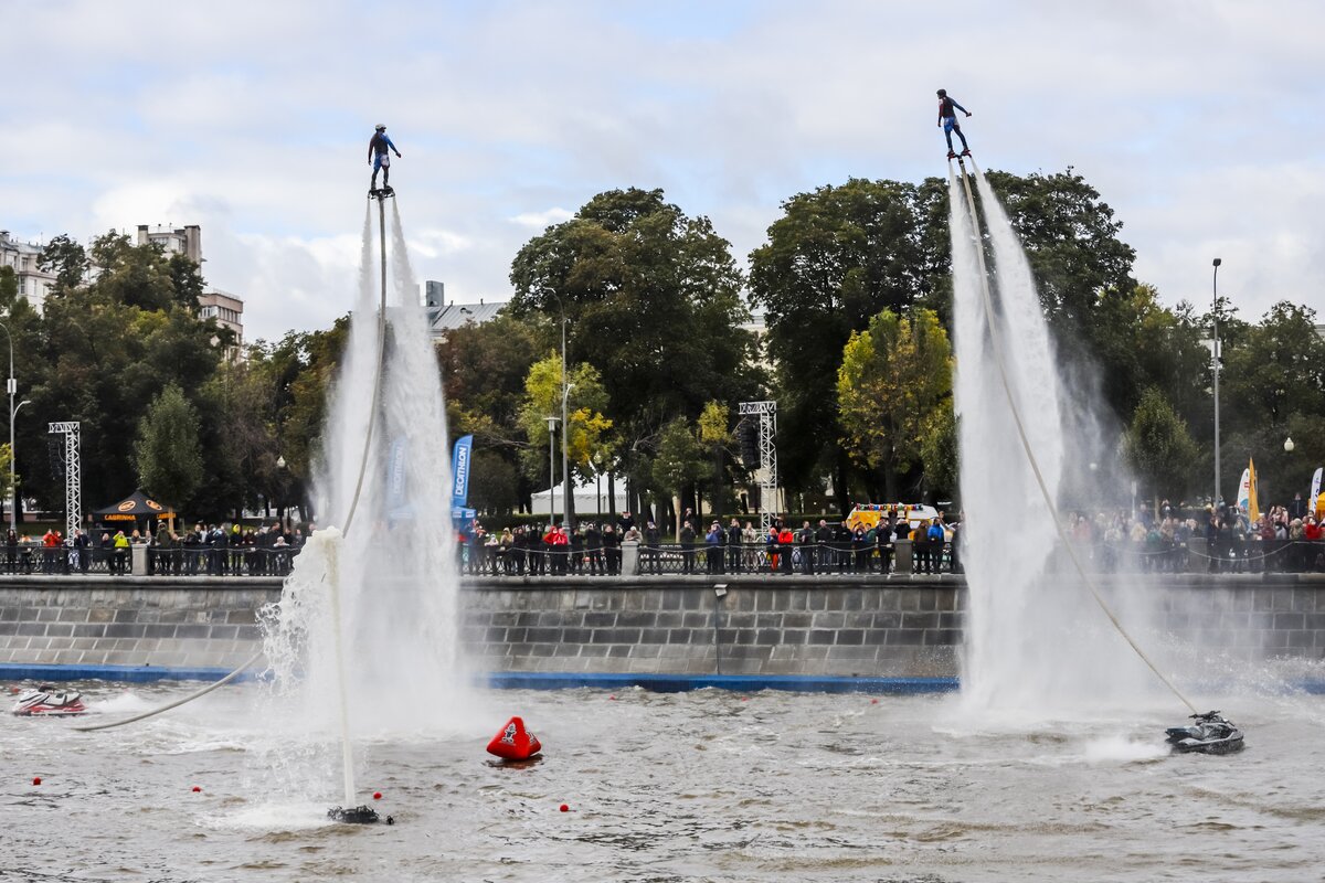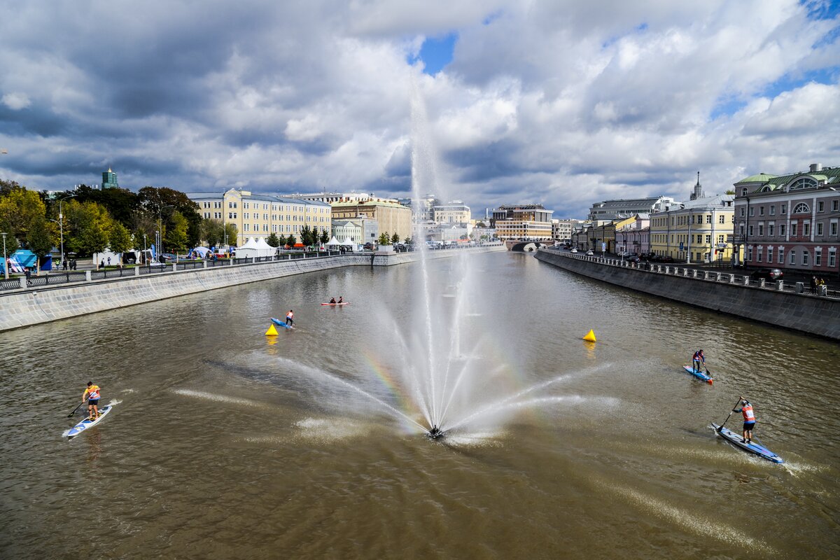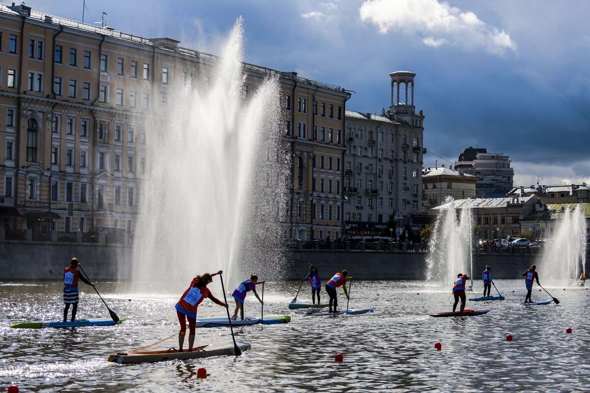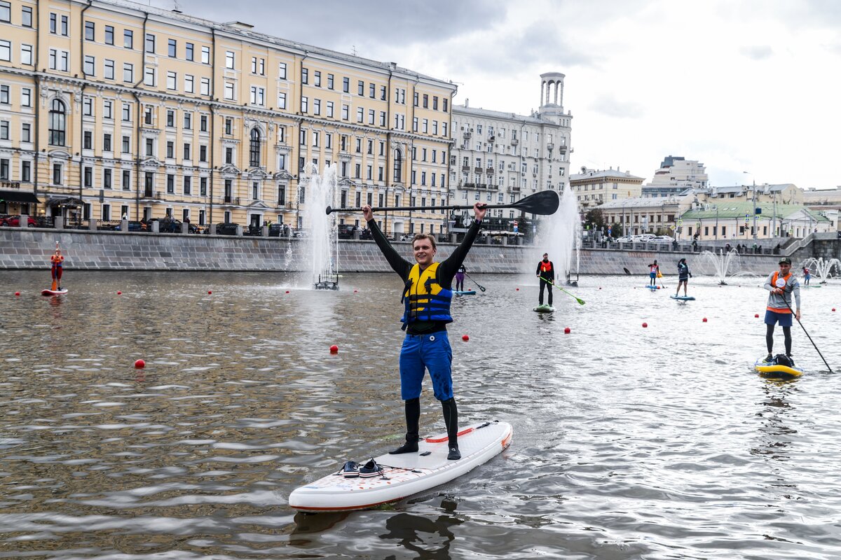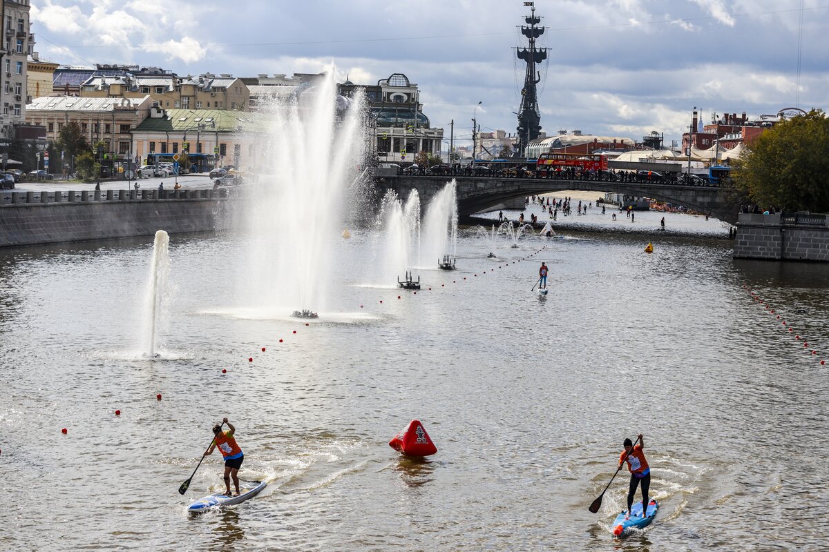 На Болотной набережной прошел первый фестиваль водных видов спорта "Московская акватория". Погода благоволила участникам, и, как по волшебству, хмурое дождливое утро превратилось в яркий и солнечный день.