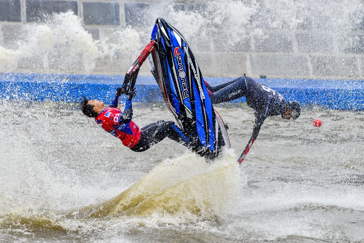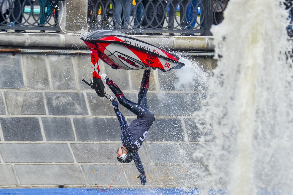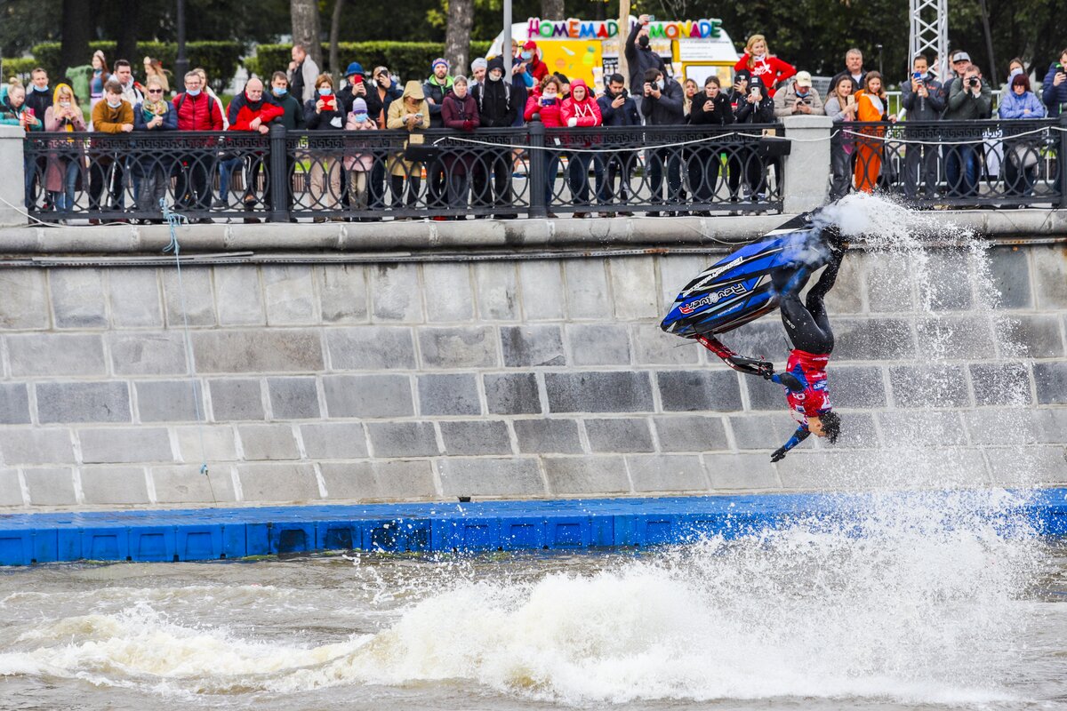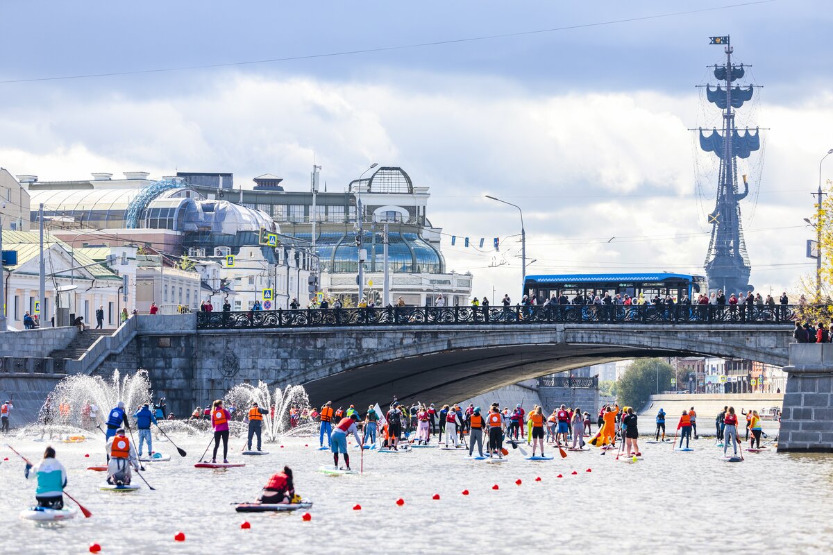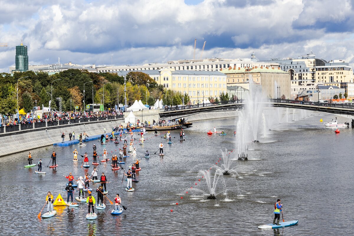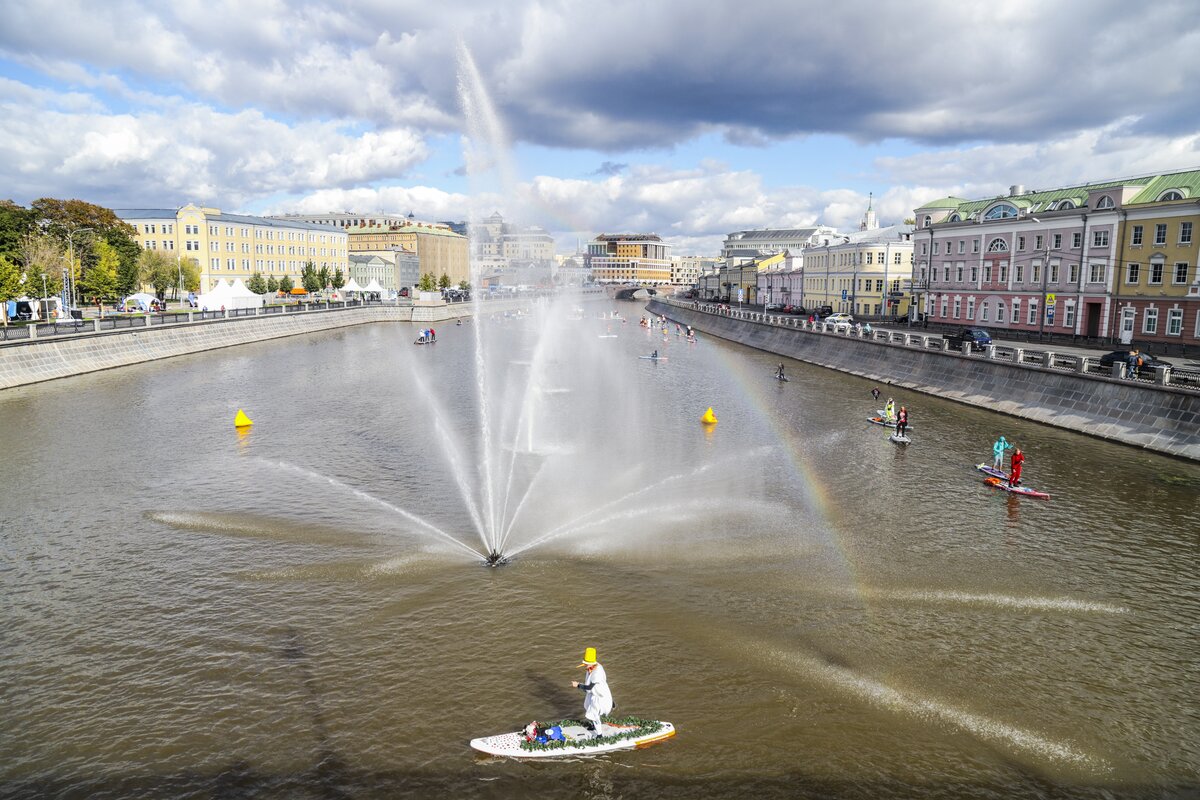 На Болотной набережной прошел первый фестиваль водных видов спорта "Московская акватория". Погода благоволила участникам, и, как по волшебству, хмурое дождливое утро превратилось в яркий и солнечный день.