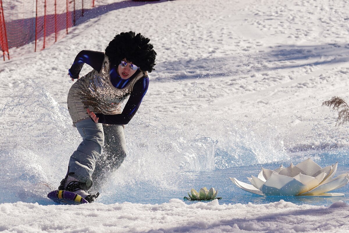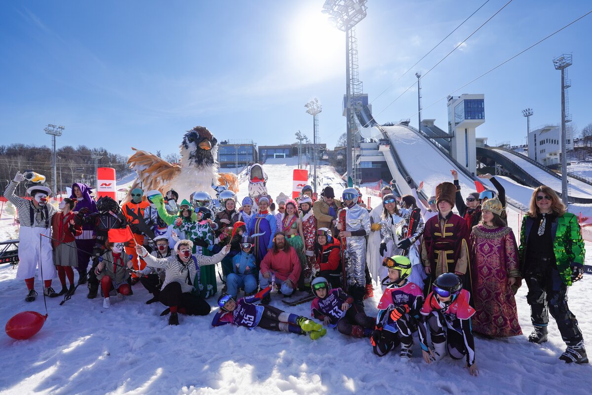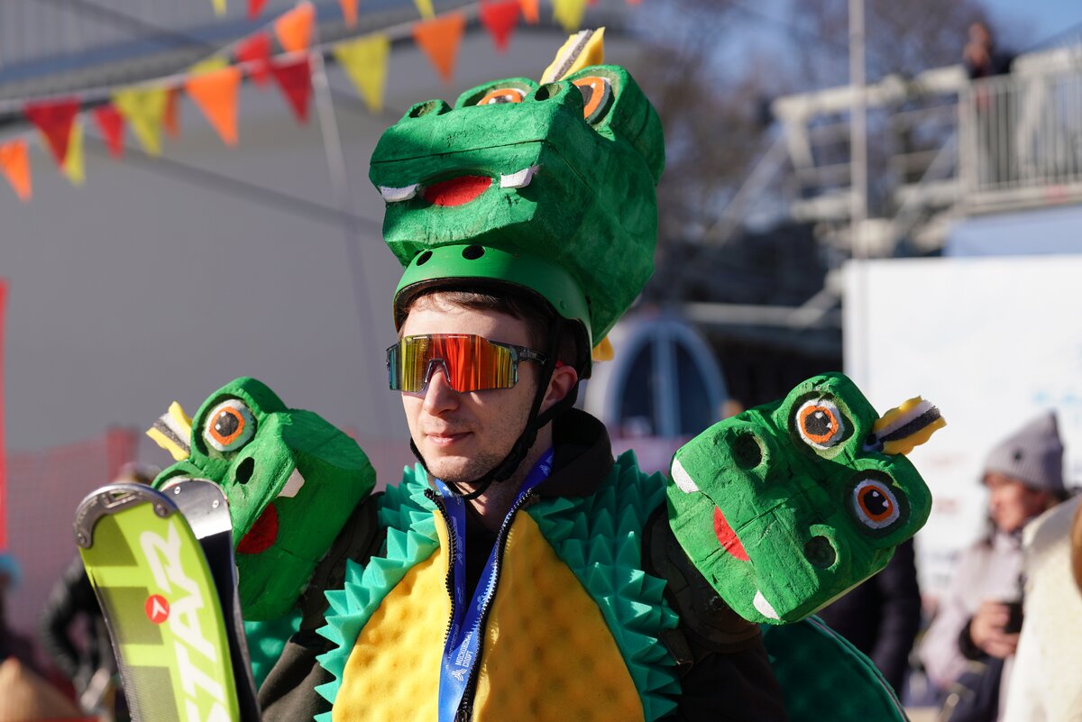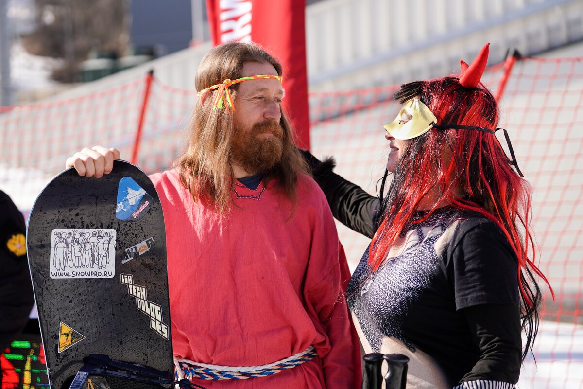 Гости склона на Воробьевых горах смогли не только поучаствовать в массовых заездах, но и стать звездами карнавала. На площадке прошел конкурс костюмов.