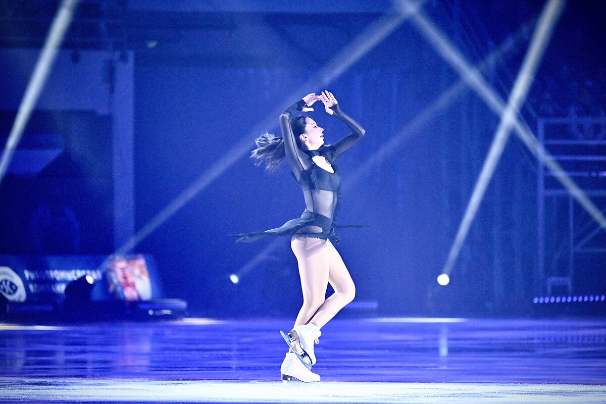 Александра Трусова вместе с мужем Макаром Игнатовым и сыном Мишей показала два номера, исполнив на публике тройной аксель – прыжок, с которым у нее были сложности в предыдущем олимпийском сезоне. Аделия Петросян, несмотря на простуду, вышла на лед трижды.