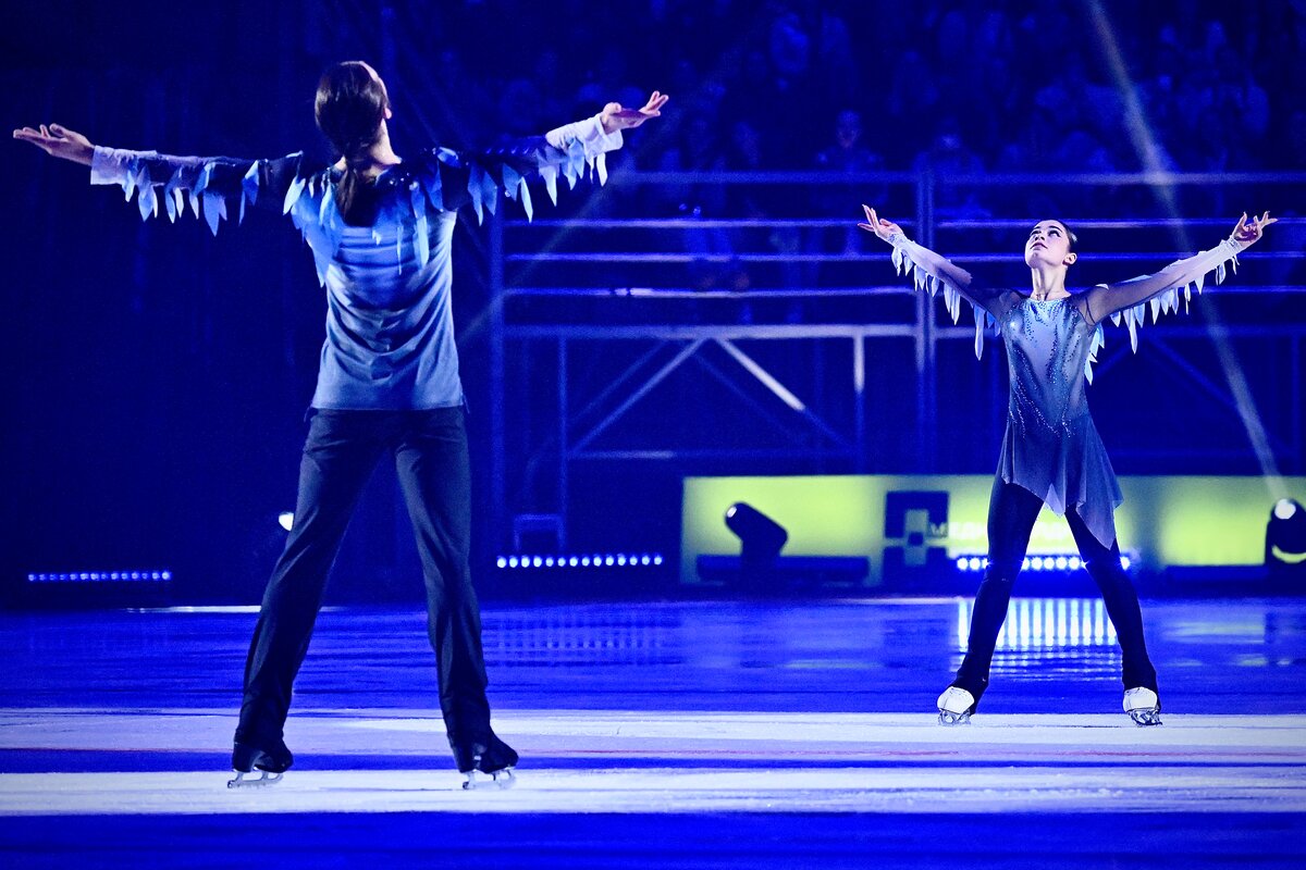 Олимпийские чемпионки Алина Загитова и Евгения Медведева выступили в разных отделениях. Загитова исполнила свою соревновательную программу "Клеопатра", а Медведева представила номер под песню "Невеста" Глюкозы.