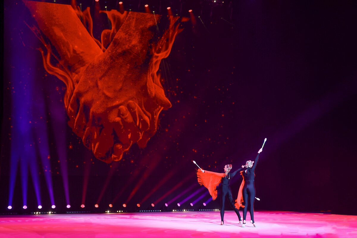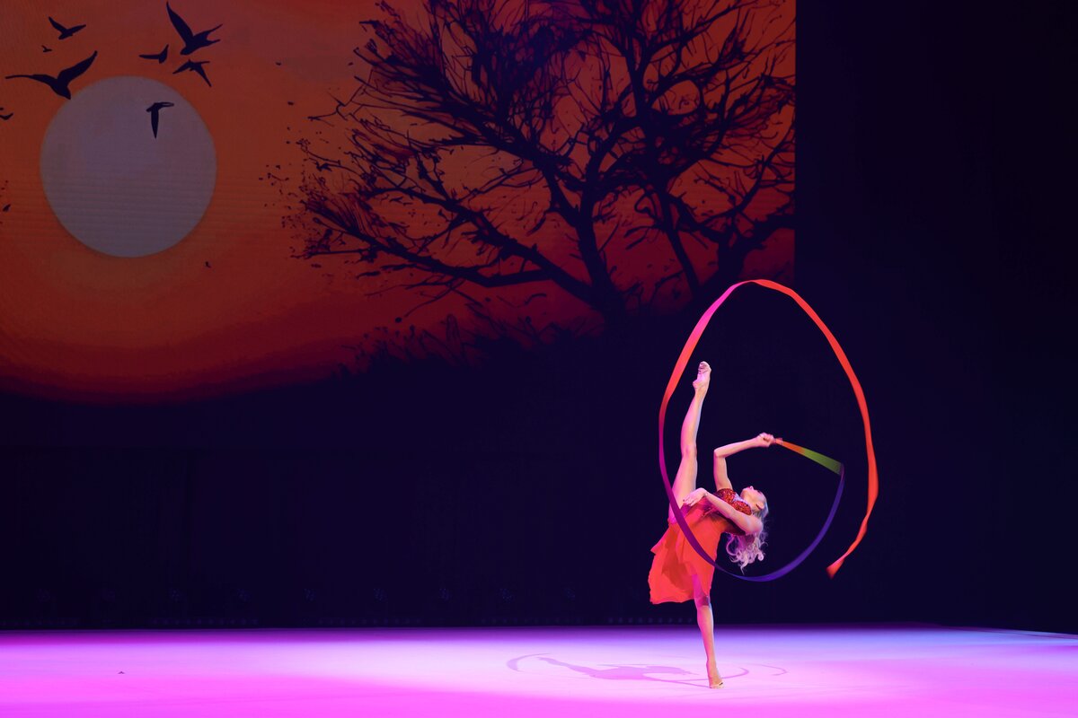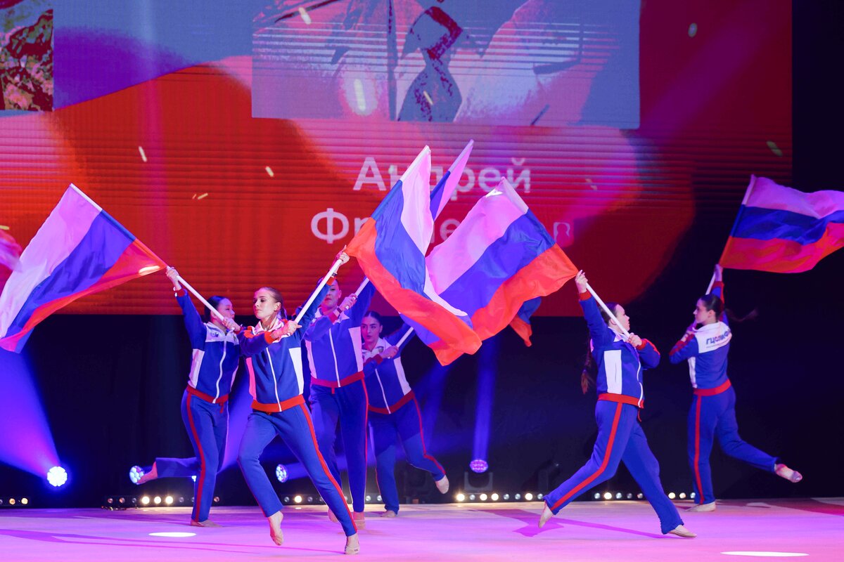 На сцене выступили олимпийские чемпионы и призеры чемпионатов мира по художественной гимнастике, чемпионы мира по бальным танцам, команда по брейкингу и артисты Театра балета Бориса Эйфмана.