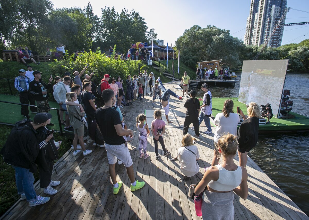 Кроме того, на берегу парка пошли мастер-классы и батлы по брейк-дансу от лучших команд, рэп выступления, а также был организован арт-перфоманс среди уличных художников.