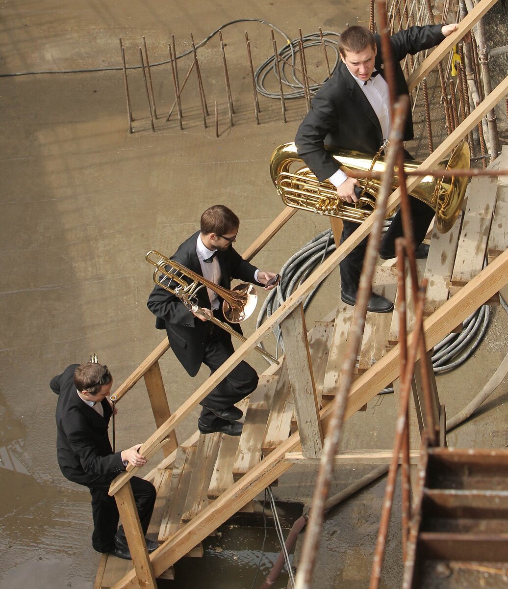 ГородСбор труппы театра "Геликон-опера" прошел на стройке