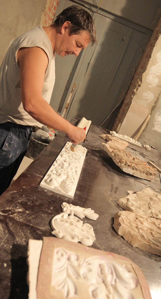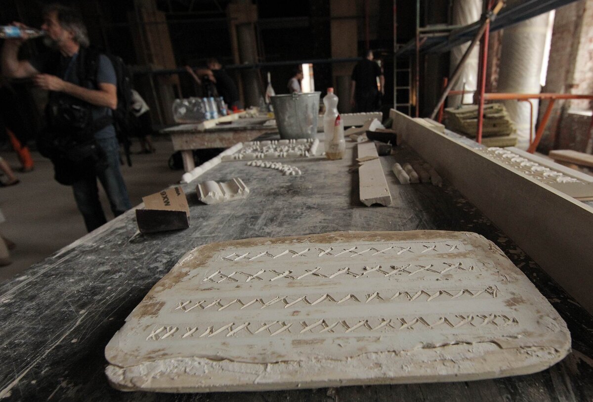 Сбор труппы театра "Геликон-опера" прошел на строительной площадке на Большой Никитской улице, где уже восьмой год идет реставрация здания театра.