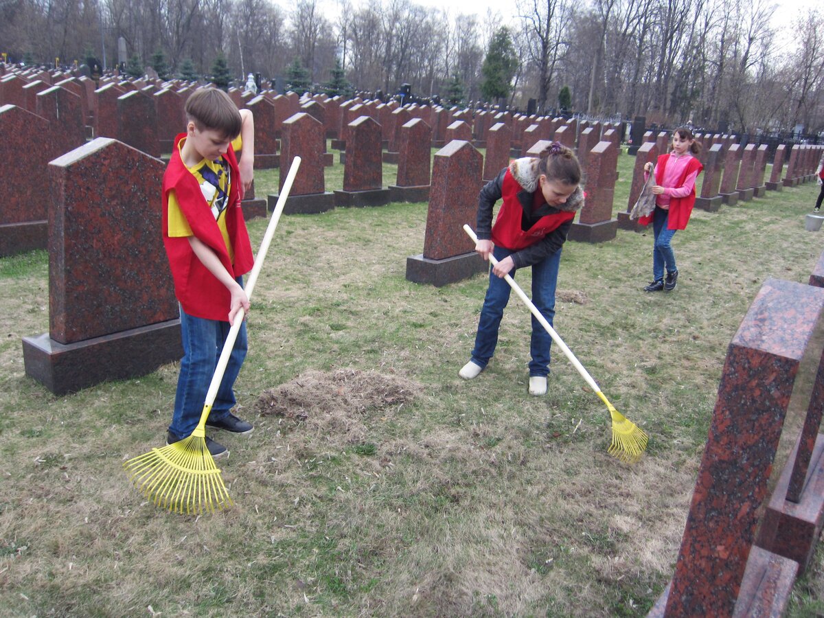 27 апреля активисты Детского движения Москвы привели в порядок места захоронений защитников Отечества, воинов, погибших в годы Великой Отечественной войны, и видных военачальников на пяти московских кладбищах – Новодевичьем, Кунцевском, Троекуровском, Ваганьковском и Преображенском. После того, как вся прошлогодняя листва была убрана, а памятники отмыты и начищены до блеска, состоялись торжественные линейки с участием ветеранов и церемонии возложения цветов к надгробиям.