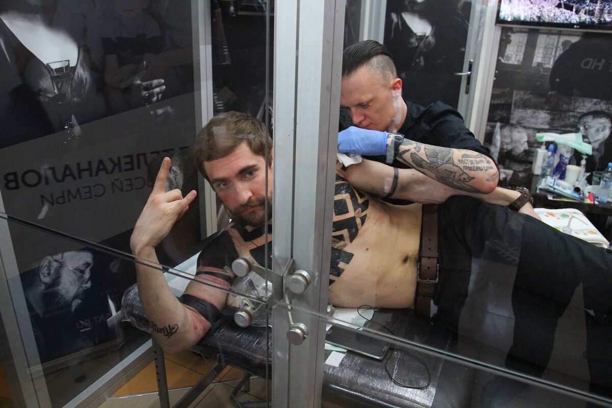 На протяжении четырех дней добровольцу, которого случайным образом выбрали, набивали татуировки как у Тома Харди в сериале "Табу". Акция стартовала 22 марта и проводилась впервые не только в России, но и в мире.