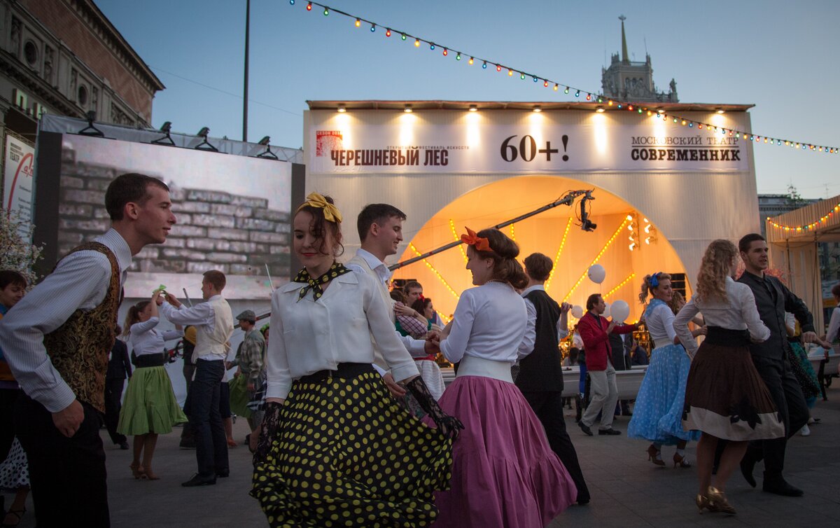 Театр "Современник" громко отметил свое 60-летие на Триумфальной площади. Уличный праздник в честь юбилея легендарной труппы организовали в рамках XVI Открытого фестиваля искусств "Черешневый лес".