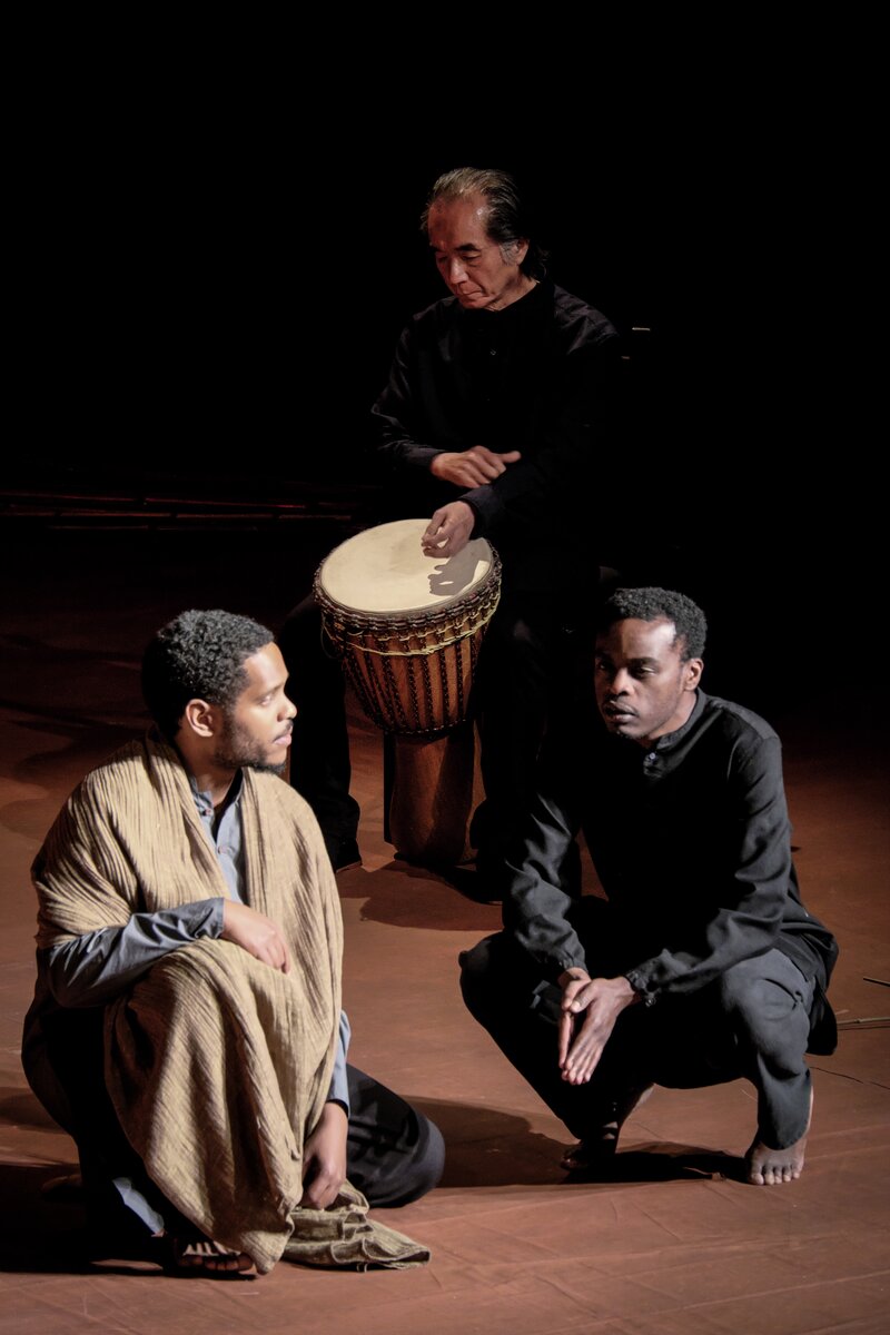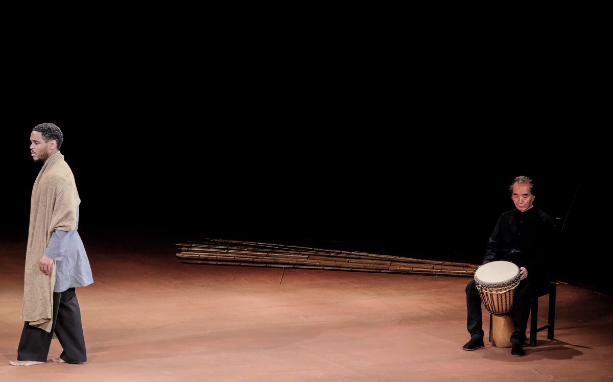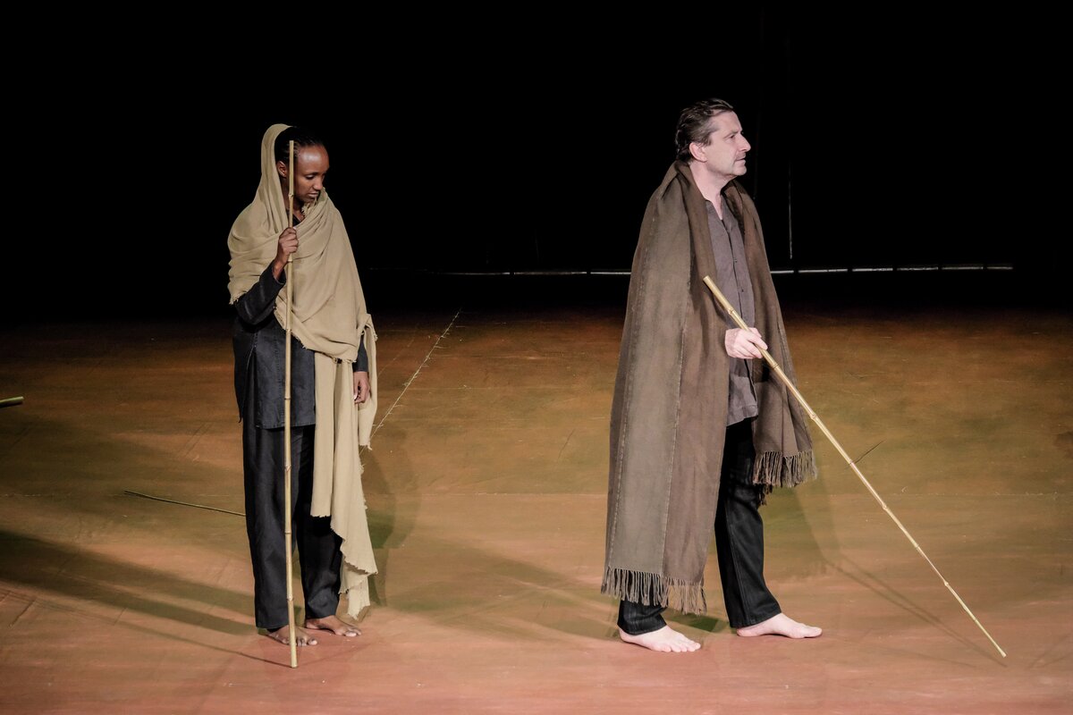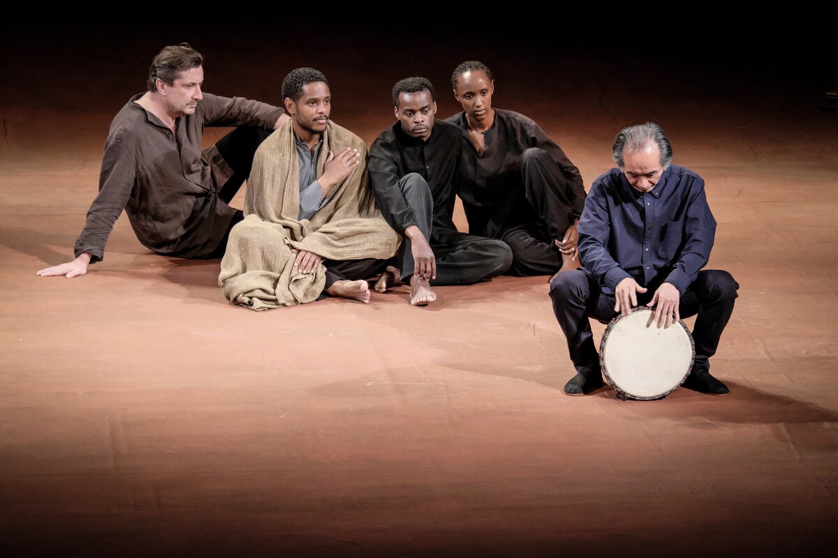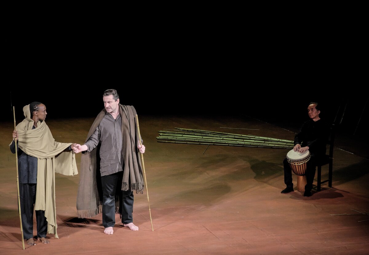 На сцене Театра Наций французский театр "Буфф дю Нор" провел репетицию спектакля "Поле битвы", созданного на основе древнеиндийского эпоса "Махабхарата"