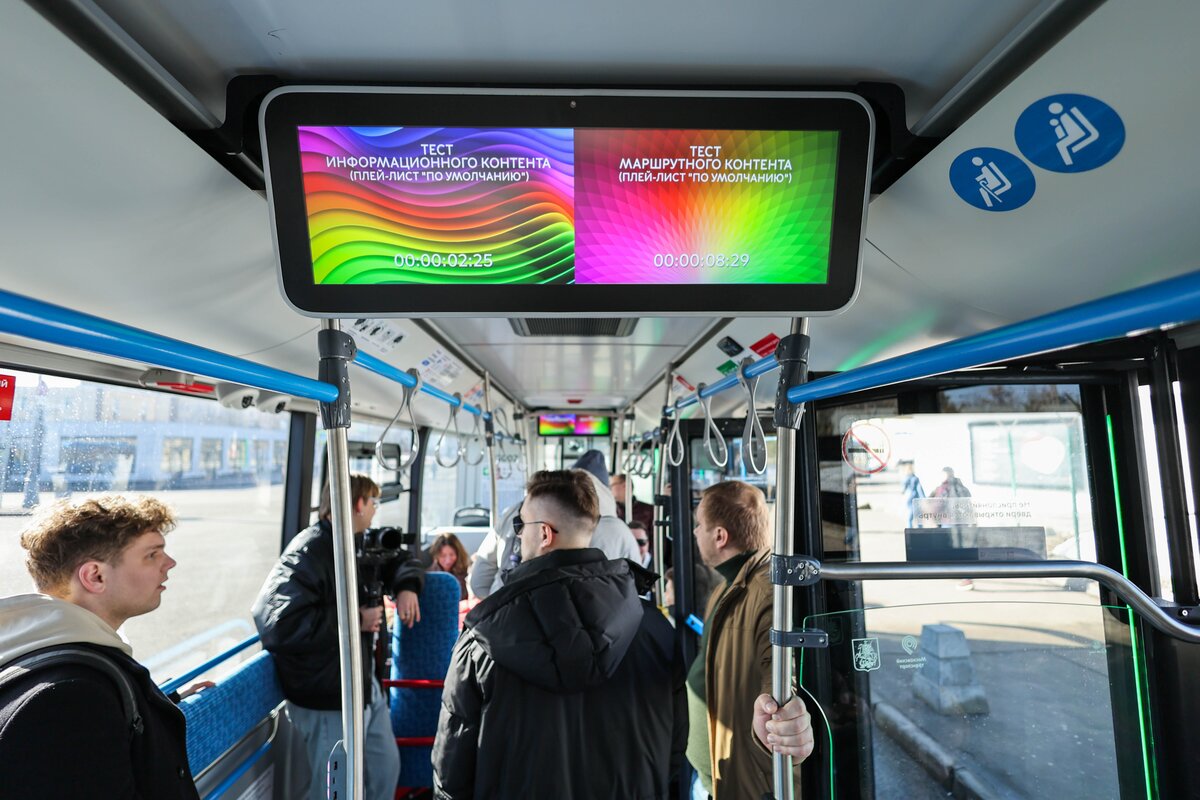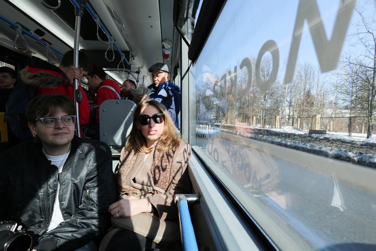 Там состоялся пресс-подход представителя департамента транспорта Москвы, а также поездка по новому пригородному маршруту от станции метро "Тушинская" до конечной остановки "Чернево" и обратно с пассажирами на новом современном автобусе ЛиАЗ Citymax 12.