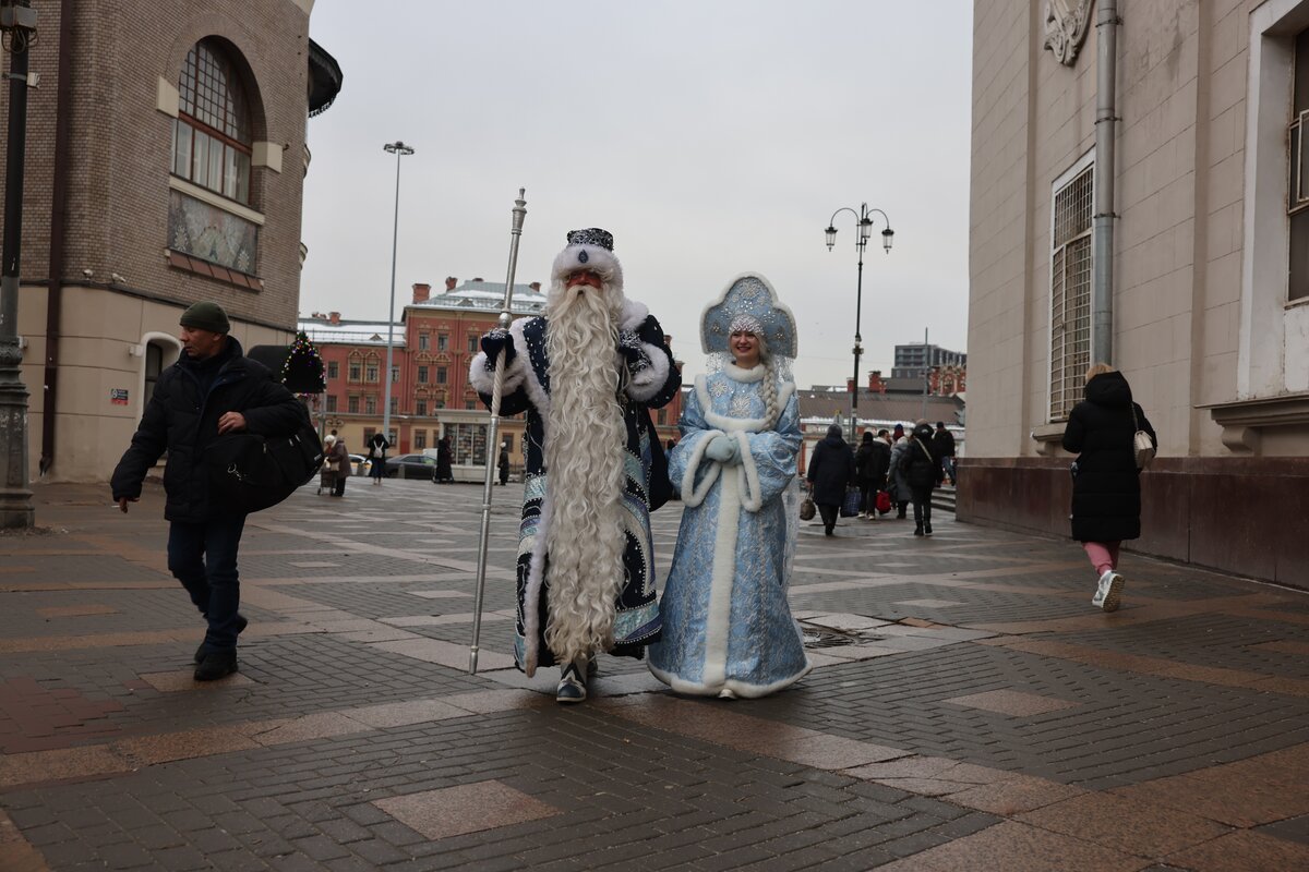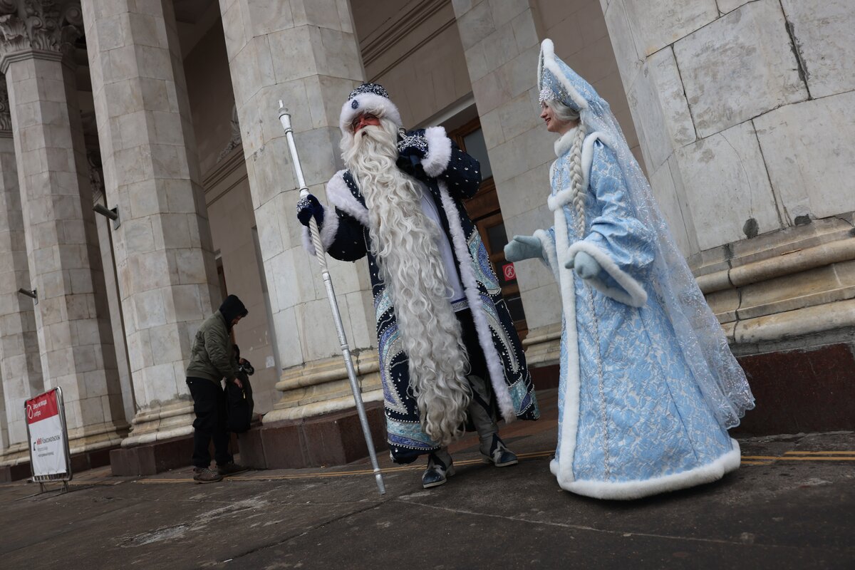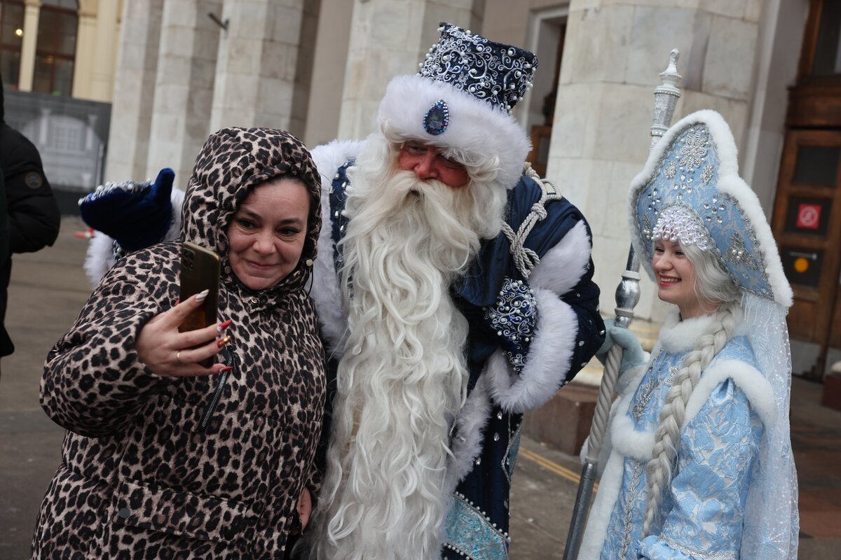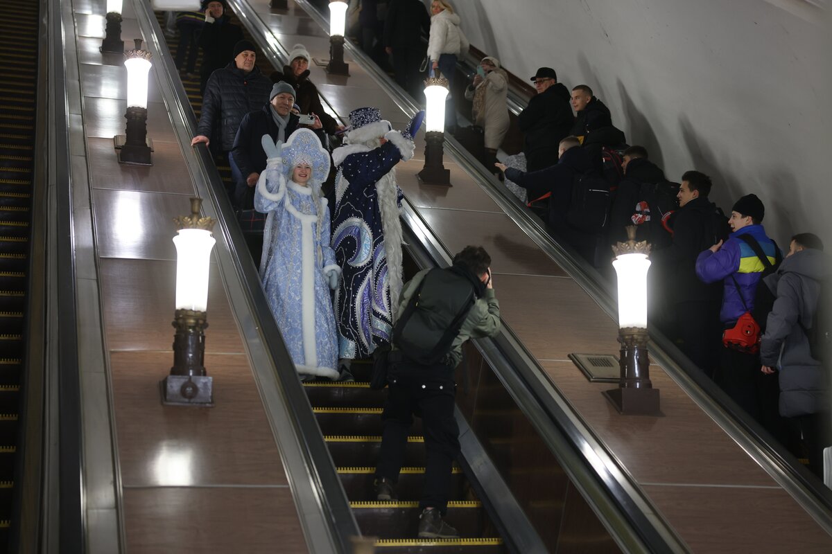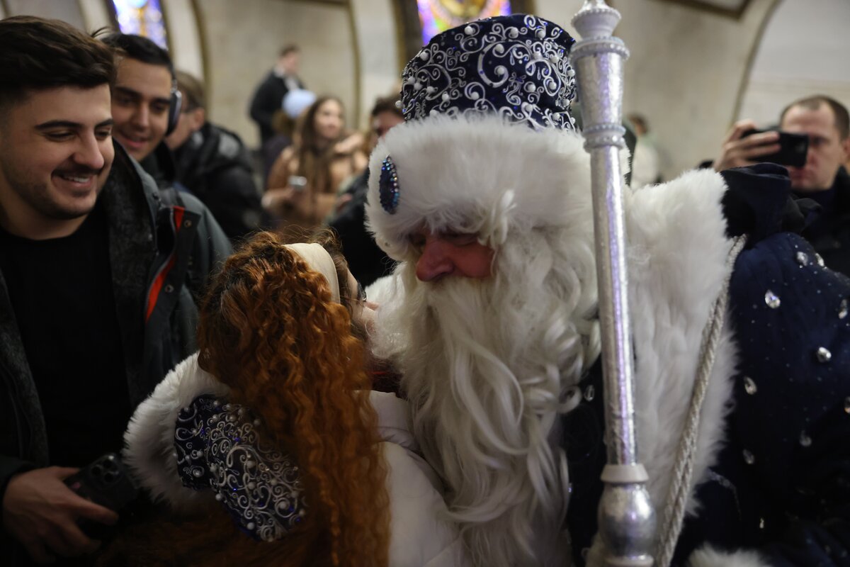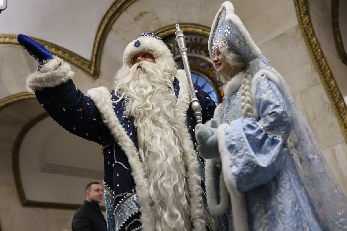Дед Мороз поздравил с наступающим Новым годом пассажиров Кольцевой линии метро в Москве.