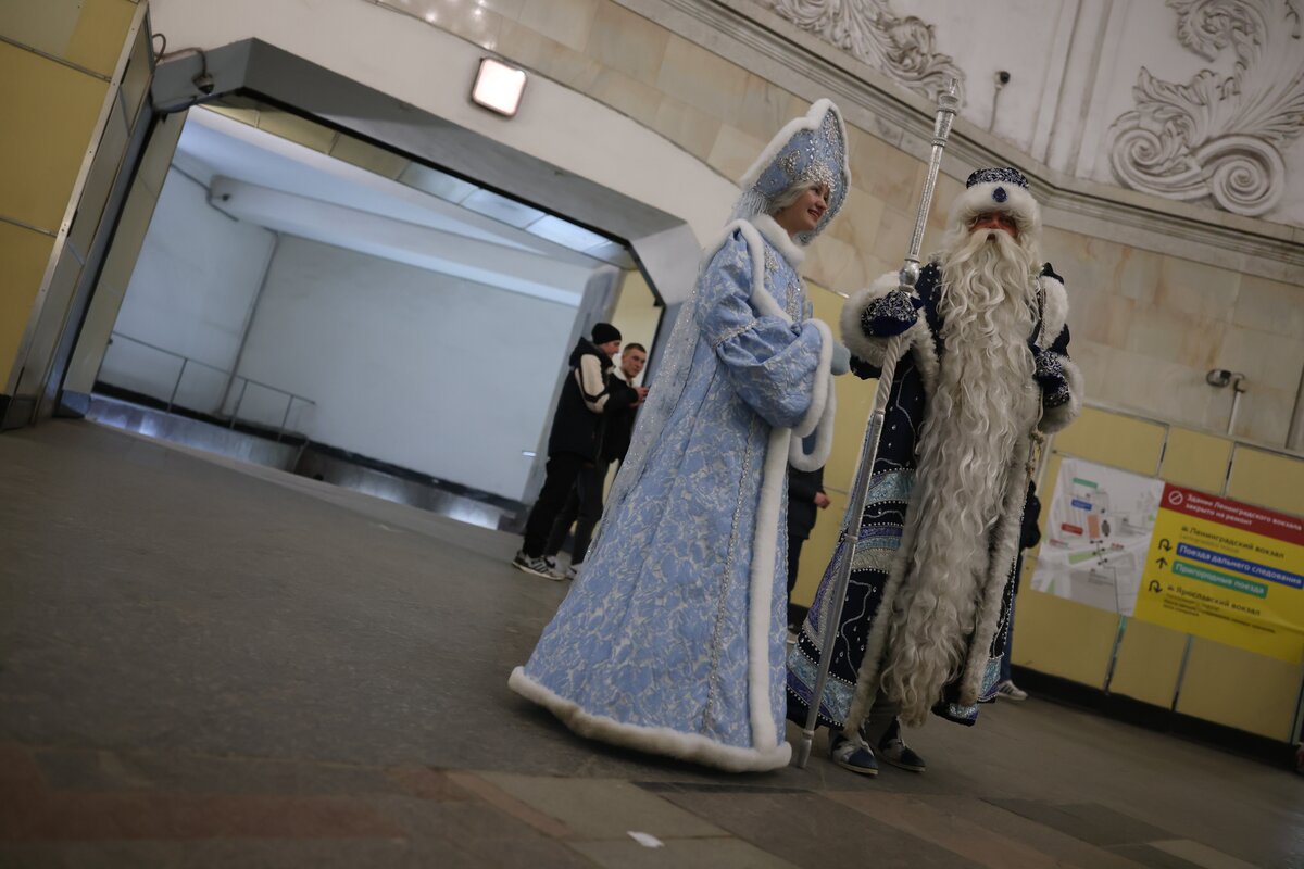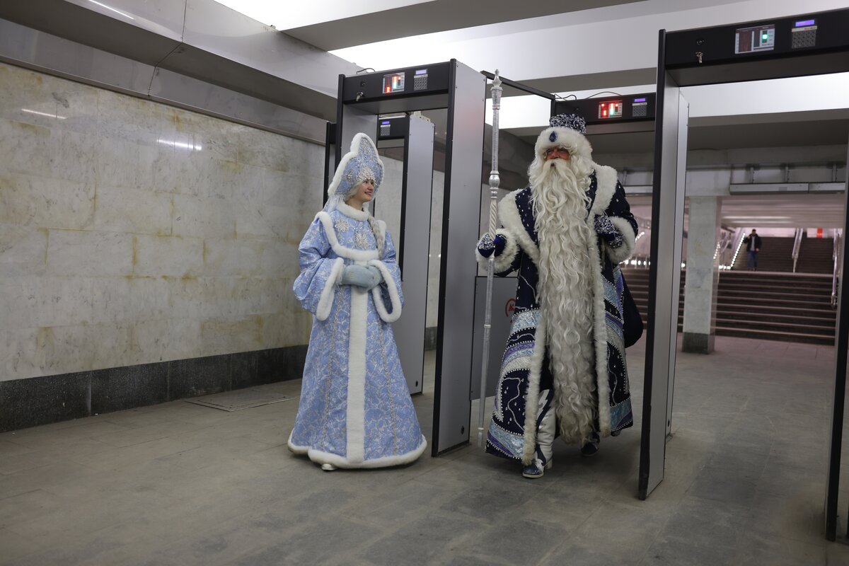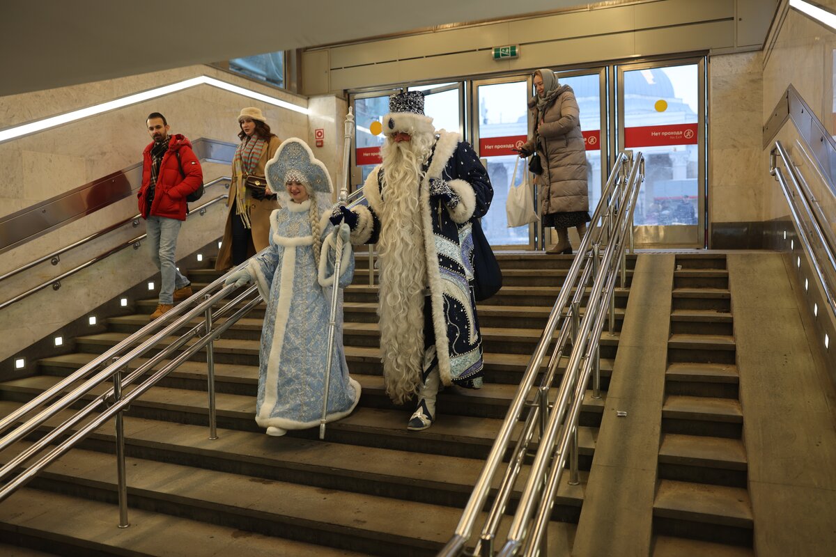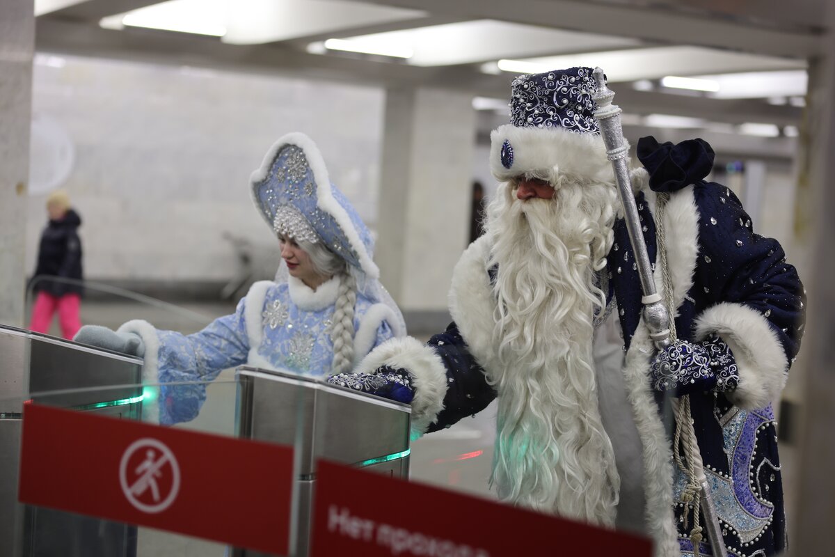 ТранспортДед Мороз поздравил с Новым годом пассажиров метро в Москве