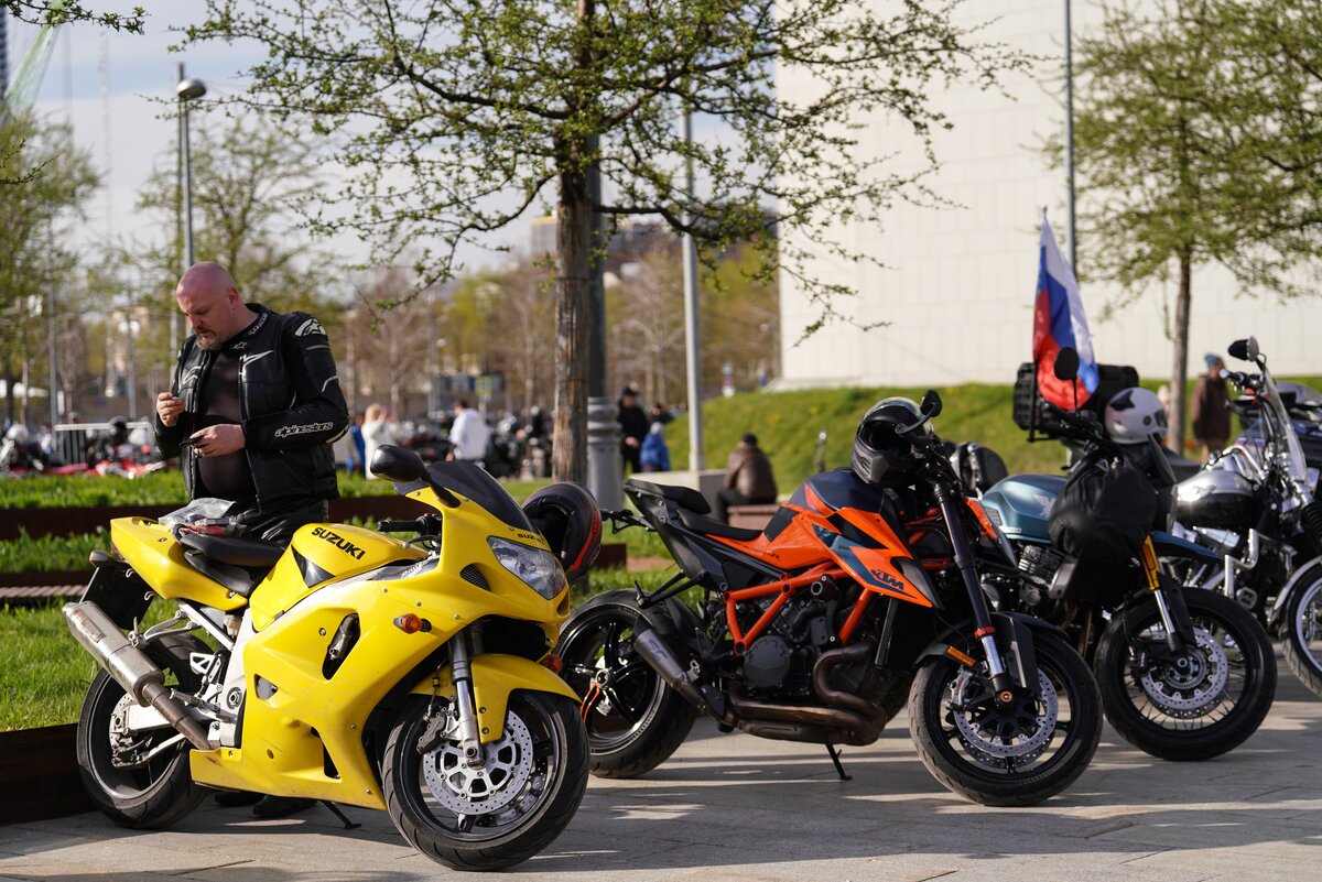 Одной из ключевых площадок традиционного открытия мотосезона от клуба "Ночные волки" стала ВДНХ. У монумента "Рабочий и колхозница" собралась мотоколонна, которая ранее стартовала из Байк-Центра.