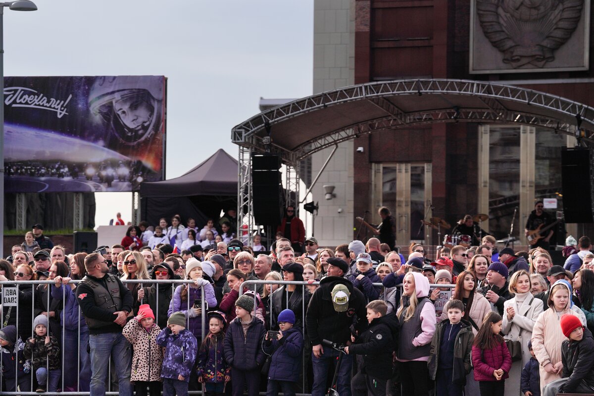Для гостей у монумента организовали музыкальную и трюковую программы. Выступили Сергей Скачков и группа "Продон". Трюковая программа была посвящена 65-летию полета Юрия Гагарина в космос.