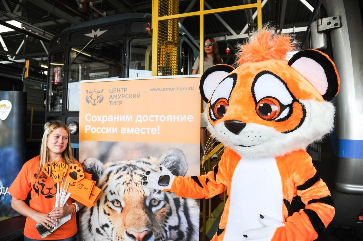 Именной поезд "Полосатый экспресс" начал курсировать на Люблинской линии метро. Он посвящен амурским тиграм. Состав будет ходить по Люблинской линии на постоянной основе. Это одиннадцатый именной поезд, который курсирует в Московском метрополитене.