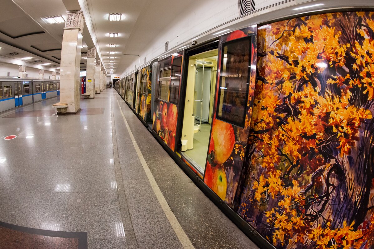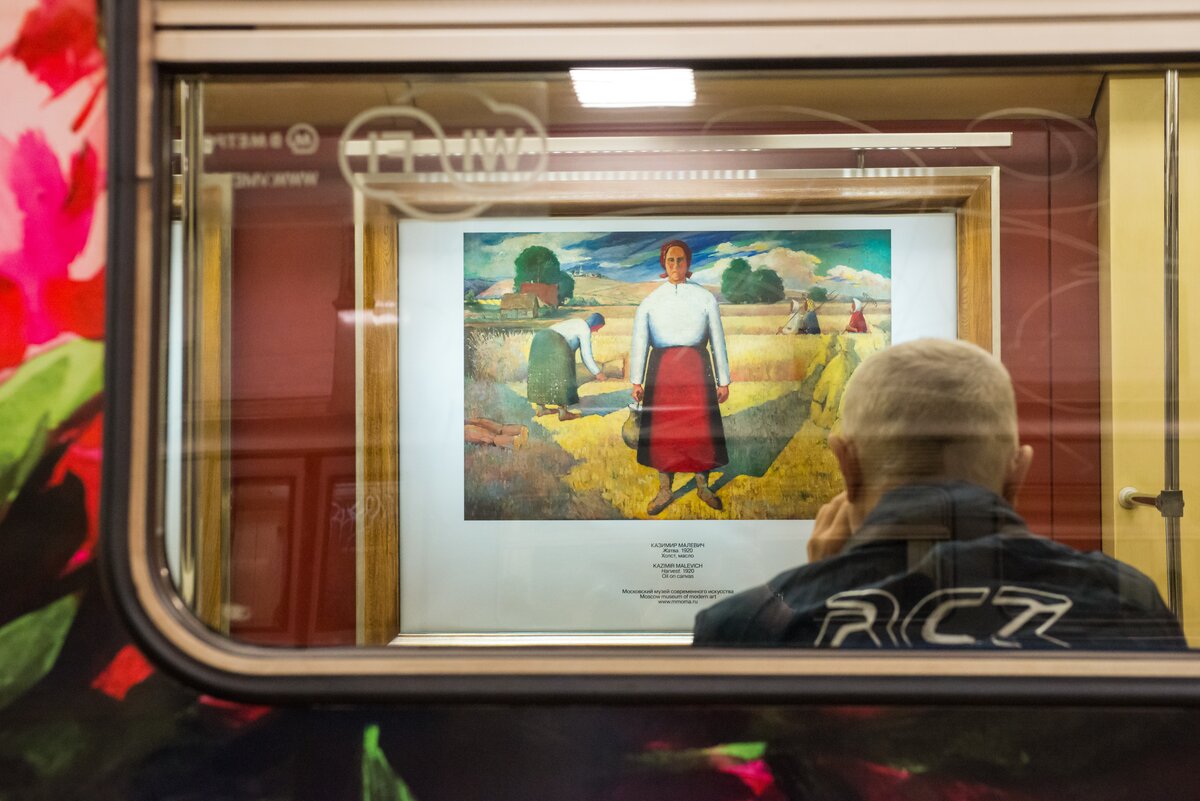 Поводом сменить экспозицию стали 2 юбилея – 80-летие метро и 15-летие ММОМА. Теперь в пяти вагонах поезда выставлены произведения 30 авторов первой и второй половины ХХ века.
