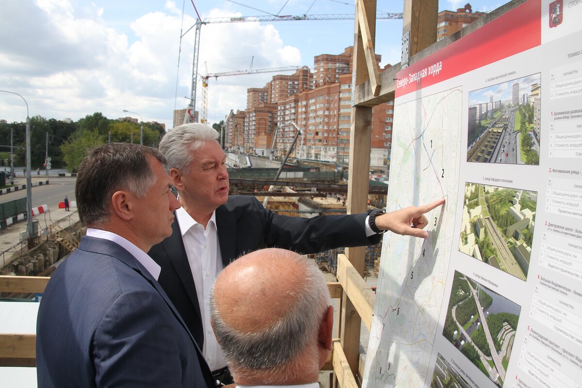 Сергей Собянин осмотрел ход реконструкции Большой Академической улицы, которая станет центральной частью Северо-Западной хорды.