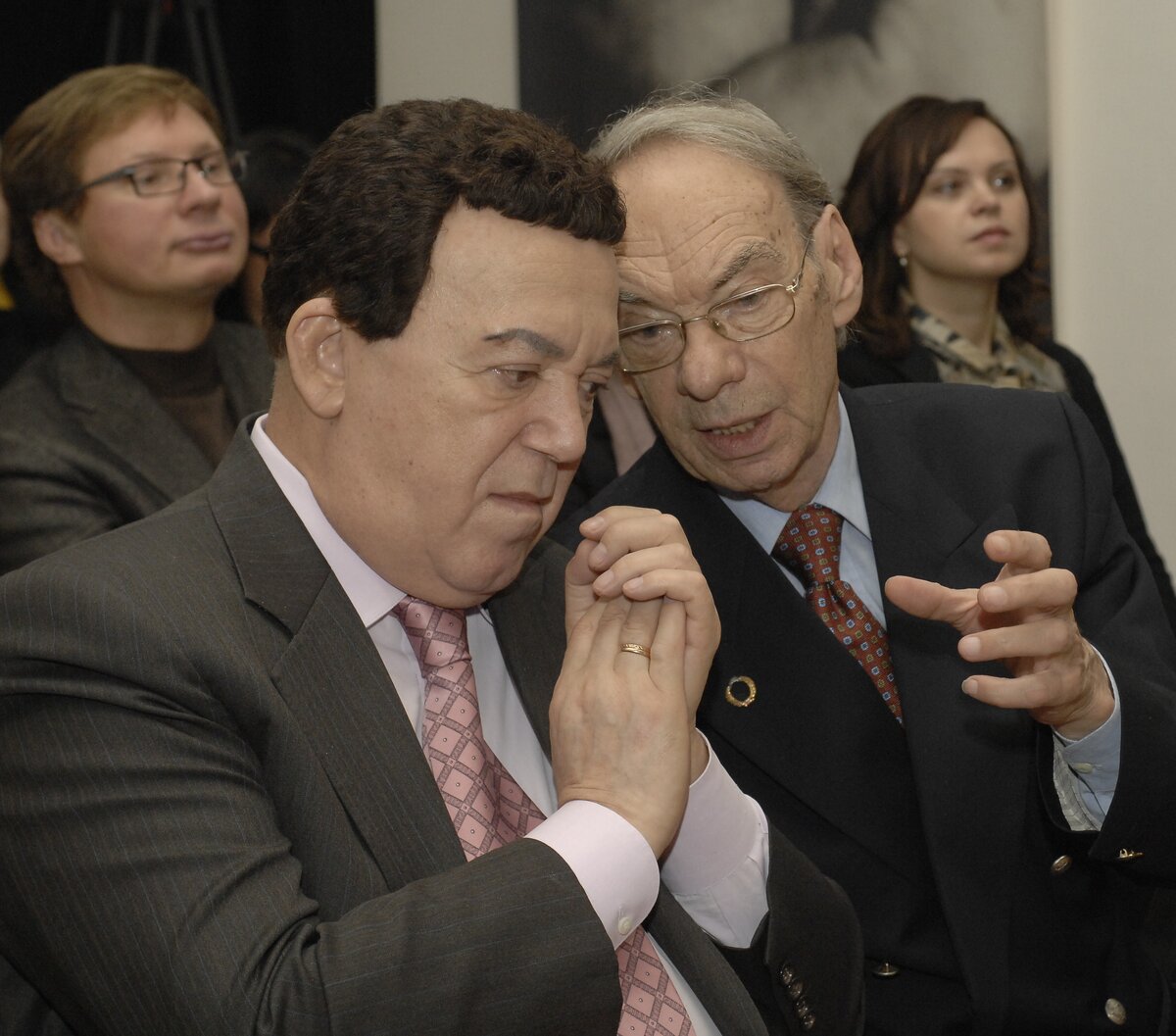 Певец Иосиф Кобзон и президент Российской Академии кинематографических искусств "Ника", актер Алексей Баталов (слева направо) на праздновании 80-летия А.Баталова в кинозале Библиотеки киноискусства им. С.М. Эйзенштейна. Фото: ТАСС/Юрий Машков 15/21Певец Иосиф Кобзон и президент Российской Академии кинематографических искусств "Ника", актер Алексей Баталов (слева направо) на праздновании 80-летия А.Баталова в кинозале Библиотеки киноискусства им. С.М. Эйзенштейна. Фото: ТАСС/Юрий Машков