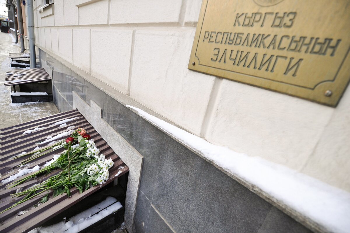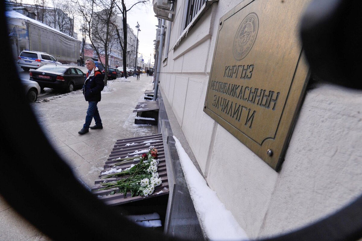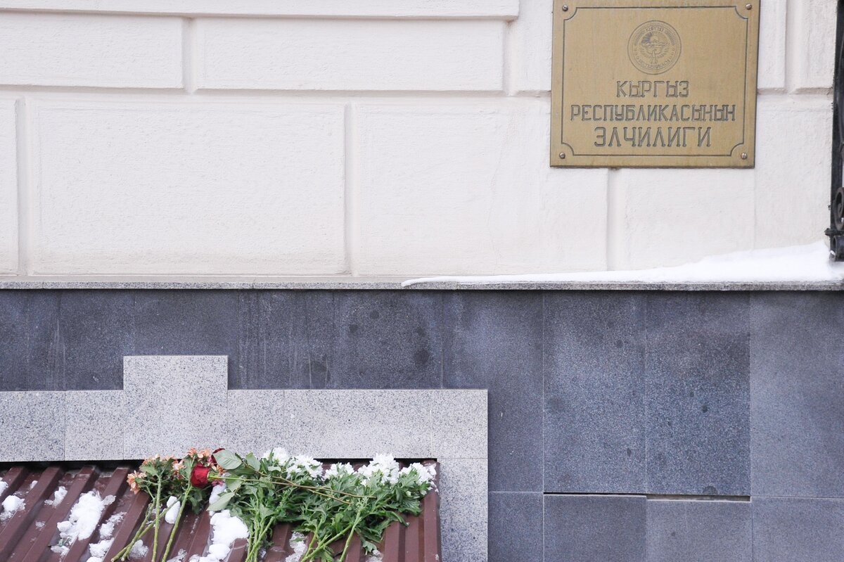 У здания посольства Киргизии 17 января люди приносили цветы в память о жертвах крушения "Боинга-747".