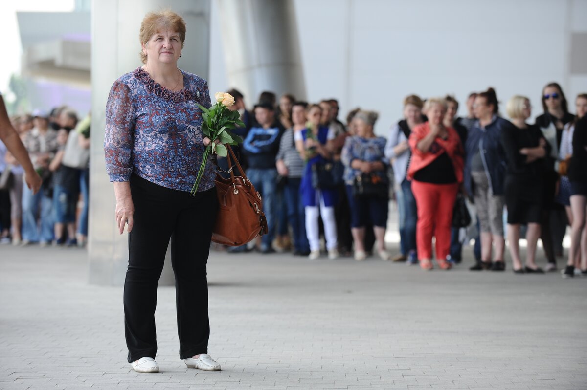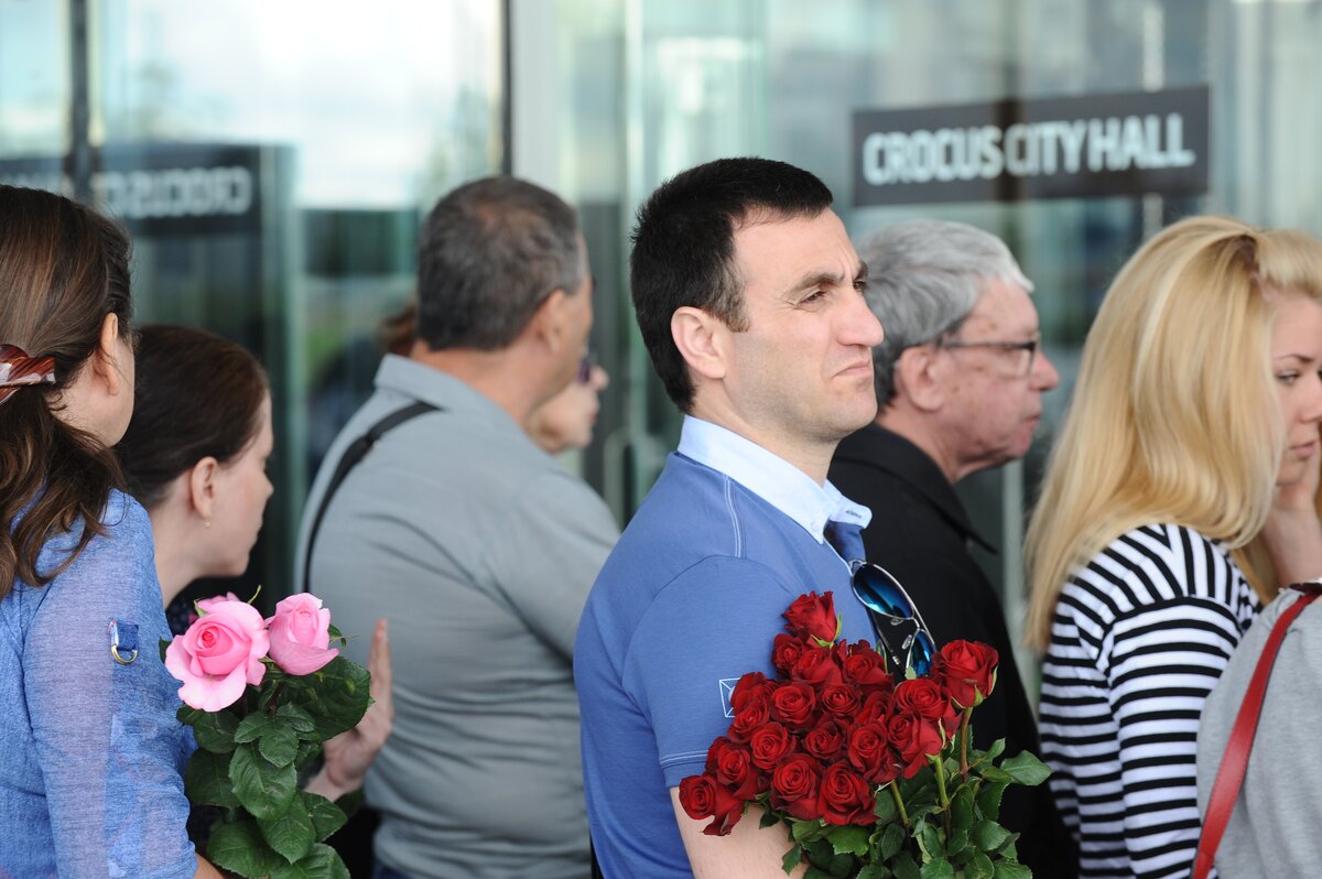 В среду, 17 июня, в КЗ "Крокус Сити Холл" началась церемония прощания с певицей и актрисой Жанной Фриске. Десятки поклонников собрались у концертного зала задолго до церемонии и образовали длинную очередь. У многих в руках цветы.