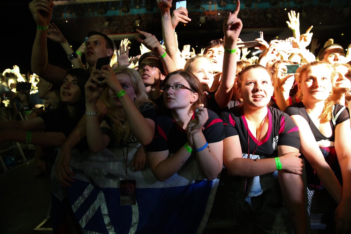 Зрители на концерте американской рок-группы Linkin Park в СК "Олимпийский". 2014 год. Фото: ТАСС/Антон Новодережкин 10/16Зрители на концерте американской рок-группы Linkin Park в СК "Олимпийский". 2014 год. Фото: ТАСС/Антон Новодережкин