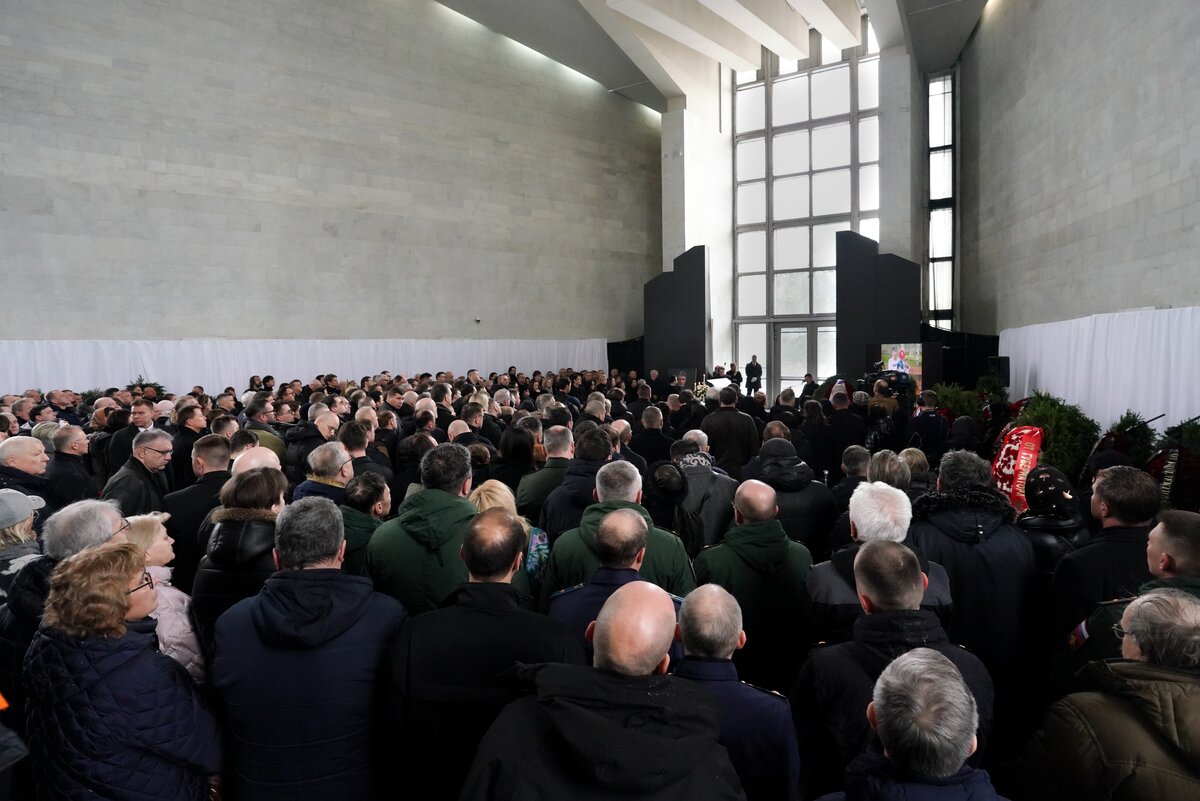 Также проститься пришли первый заместитель главы администрации президента Алексей Громов, секретарь Совета безопасности Сергей Шойгу и двукратный олимпийский чемпион по хоккею Вячеслав Фетисов. Венки прислали Владимир Путин, Михаил Мишустин, Андрей Белоусов и другие официальные лица государства.