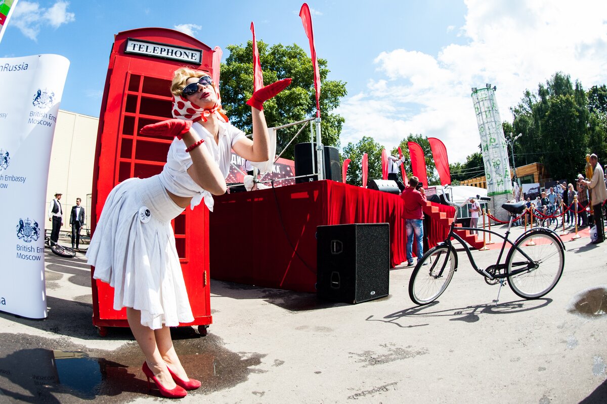 На Фестивальной площади парка Сокольники состоялся велопарад "Леди на велосипеде". Участницам пришлось нарядиться в костюмы кинозвезд прошлого века.