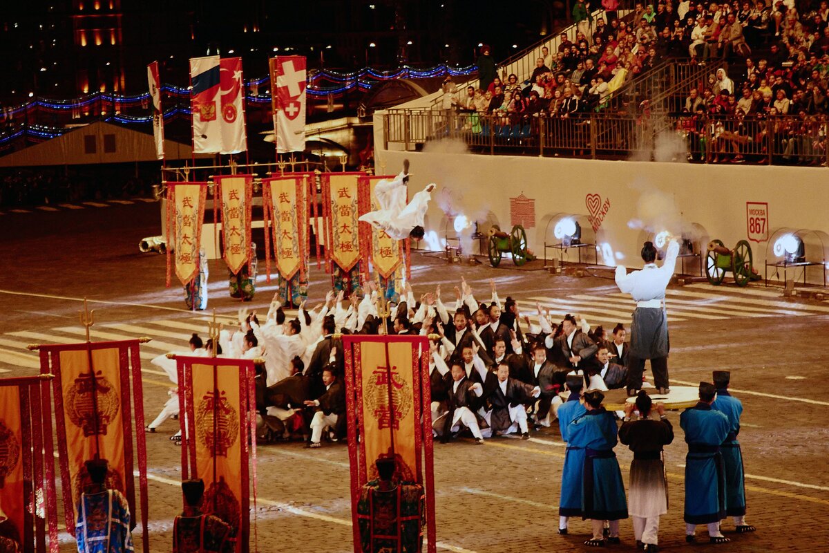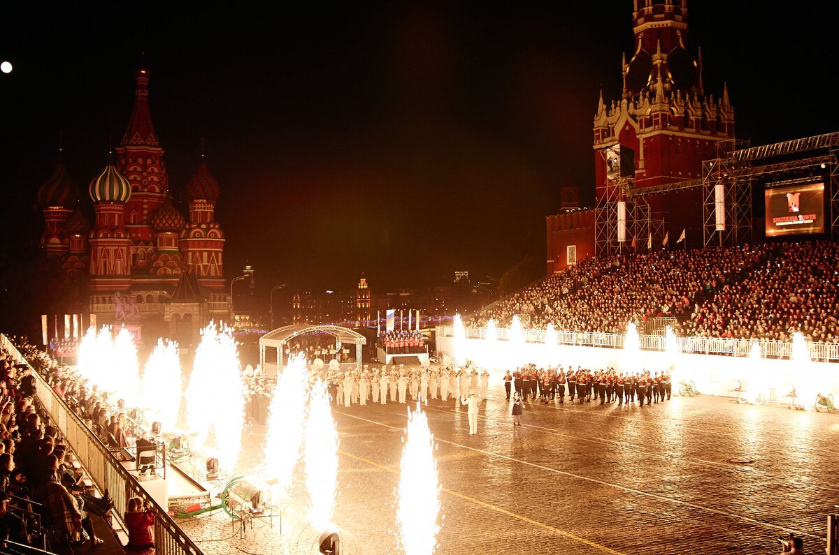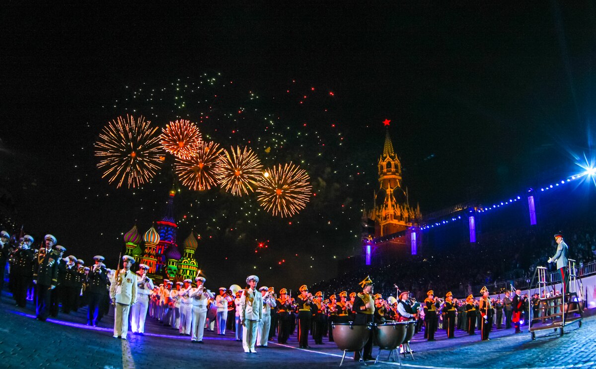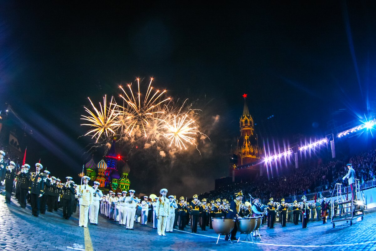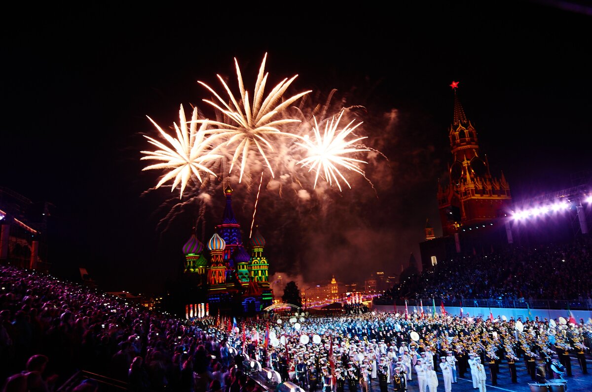 У стен Московского Кремля выступили представители десяти стран. Финальное шоу сопровождалось красочным салютом, и по старой традиции на закрытие смотра приехала французская певица Мирей Матье.