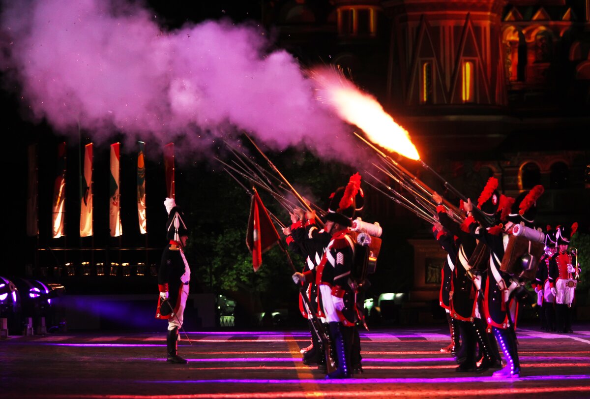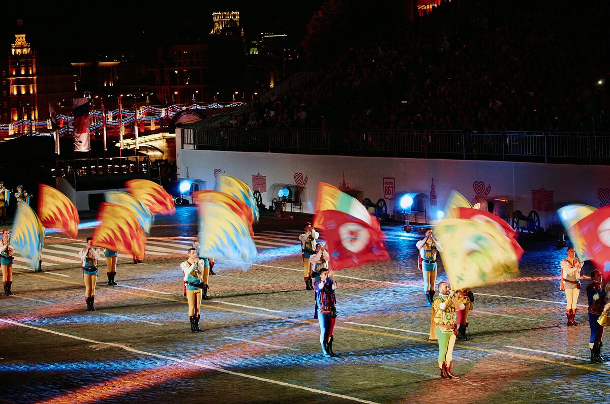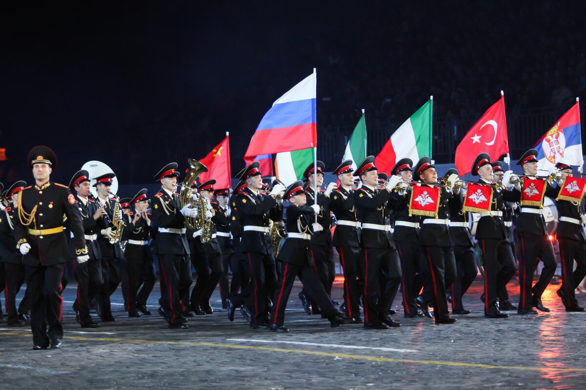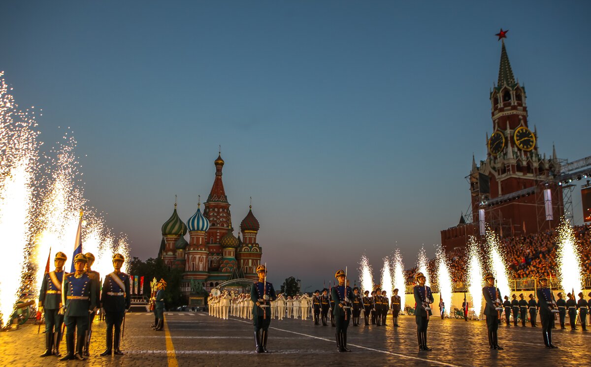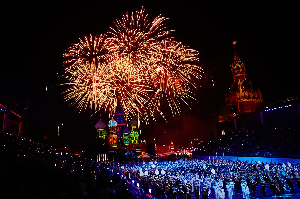 У стен Московского Кремля выступили представители десяти стран. Финальное шоу сопровождалось красочным салютом, и по старой традиции на закрытие смотра приехала французская певица Мирей Матье.