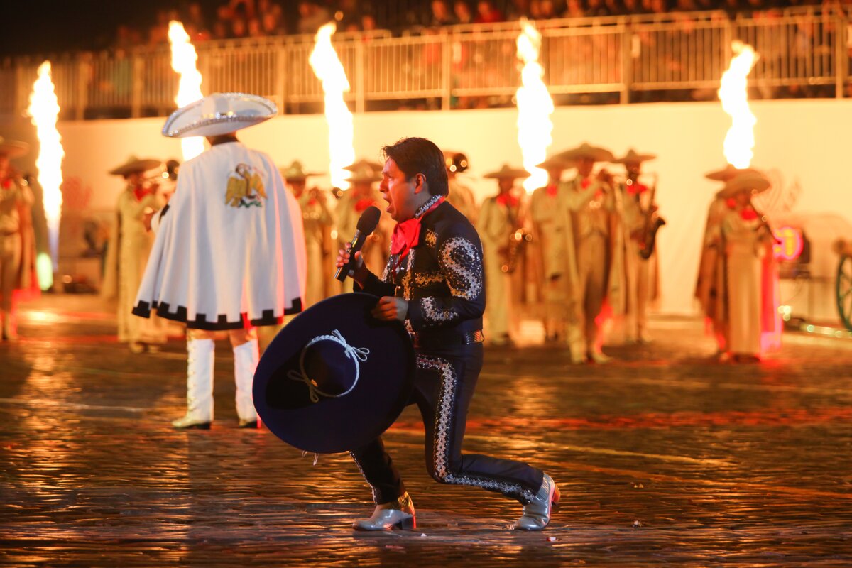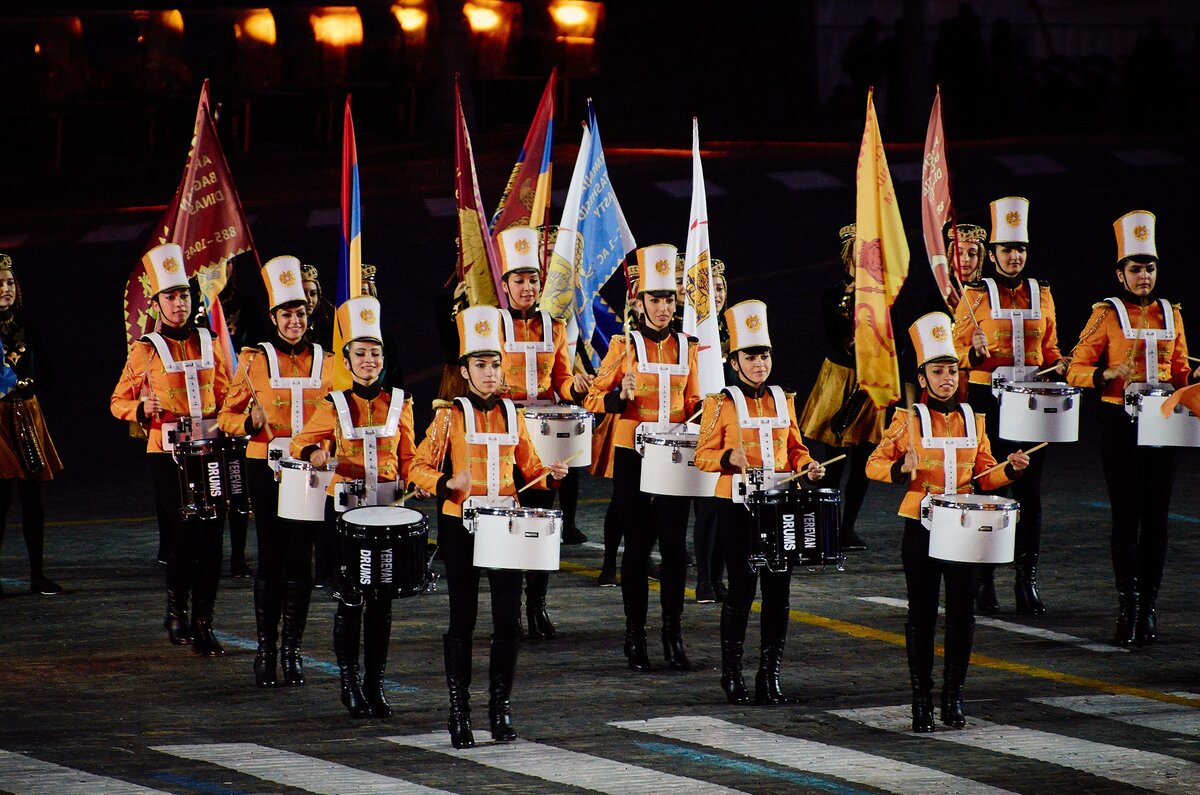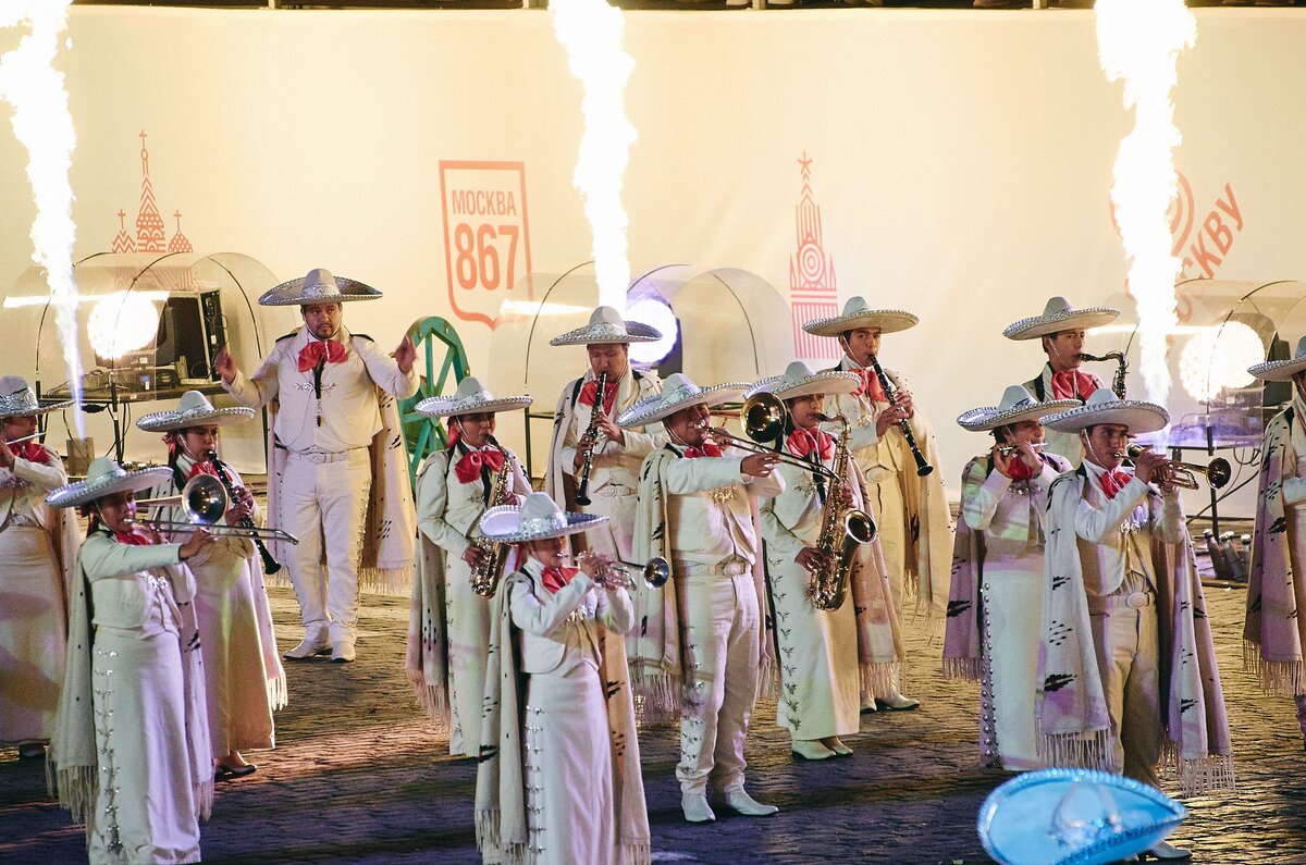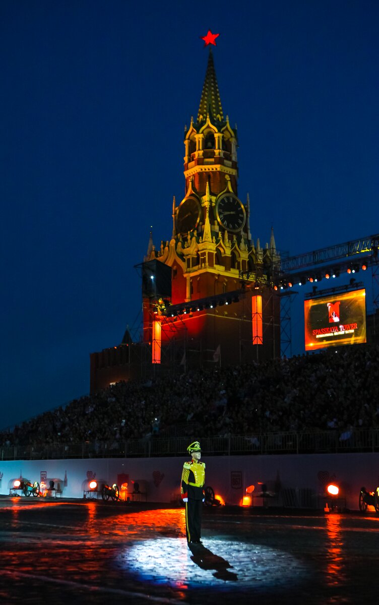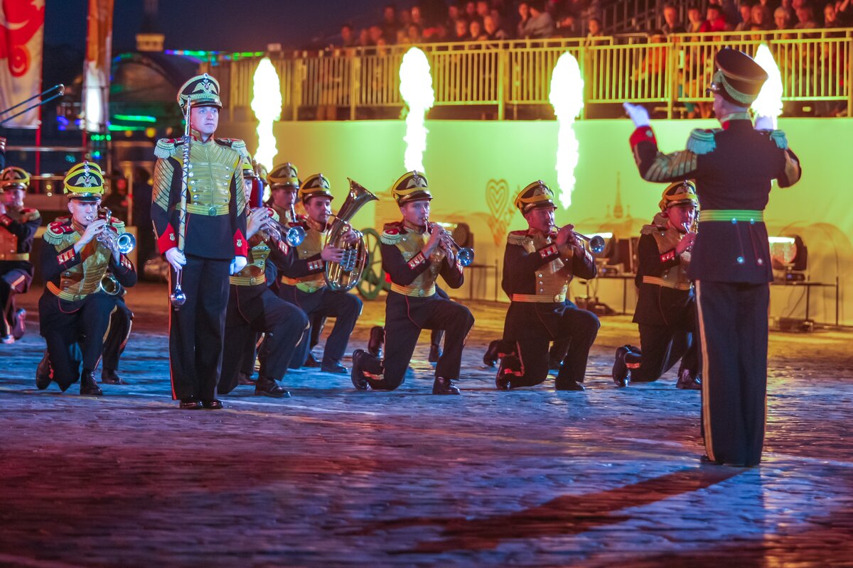 У стен Московского Кремля выступили представители десяти стран. Финальное шоу сопровождалось красочным салютом, и по старой традиции на закрытие смотра приехала французская певица Мирей Матье.