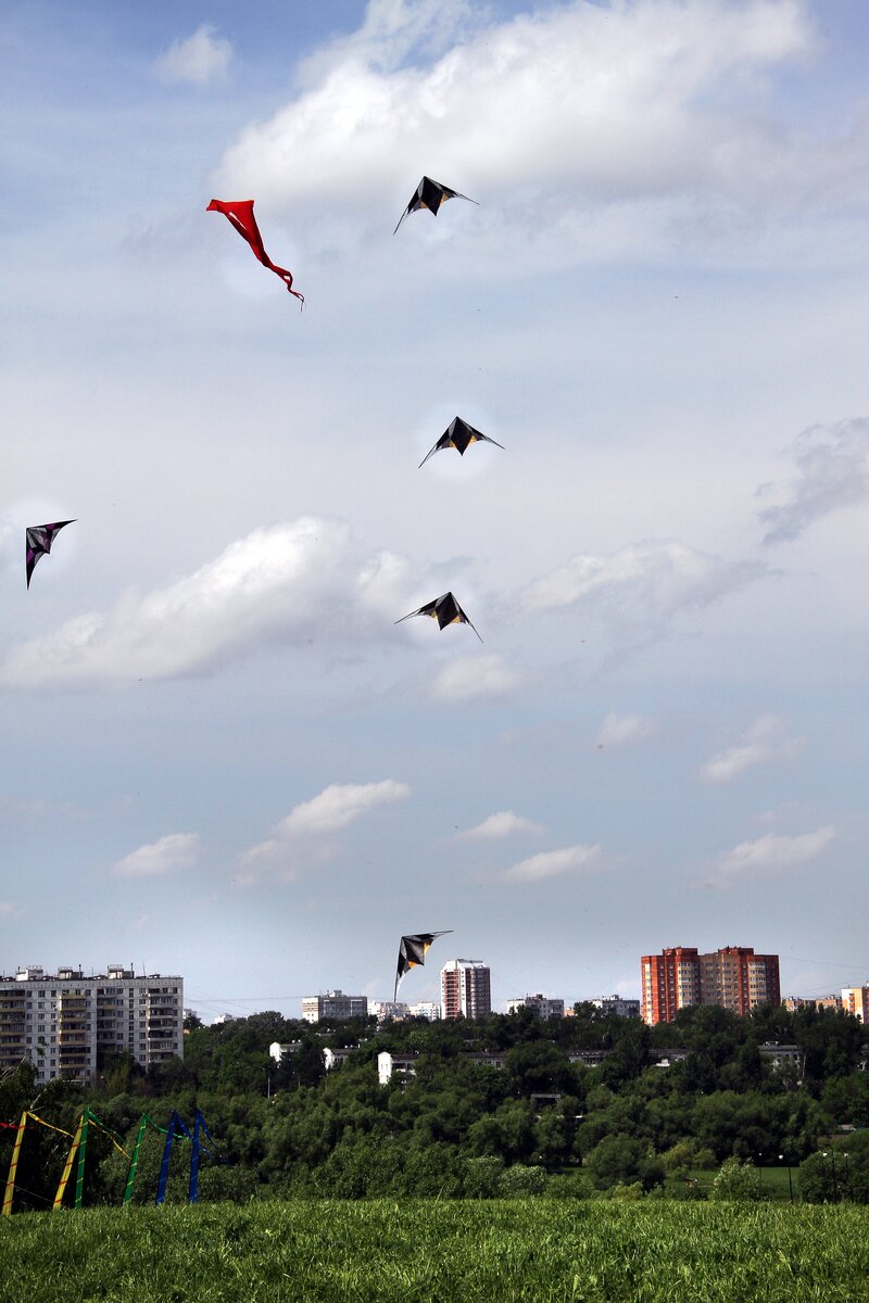 В субботу, 25 мая, в рамках фестиваля "Пестрое небо" состоялось выступление российской пилотажной группы Red Alert, представлявшей нашу страну на Чемпионате мира по спортивным змеям в апреле прошлого года во Франции.