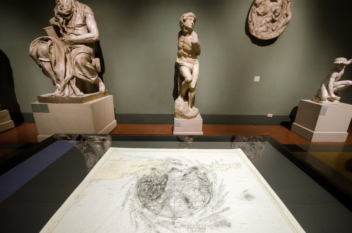 Основная часть проекта расположена в зале Микеланджело. В центре – видеоинсталляция, посвященная перформансу в водах Атлантики – работа Пономарева предстает как тонкая метафора идеальной гармонии. В едином пространстве зала, как в розе ветров, представлены четыре части света, четыре мировоззрения, четыре эпохи и четыре великих художника: Альбрехт Дюрер, Джованни Пиранези, Кацусика Хокусай, Анри Матисс. Их "графические листы", выполненные Пономаревым в различных техниках, задают размышлениям новые векторы и позволяют зрителю выстроить собственную карту искусства.