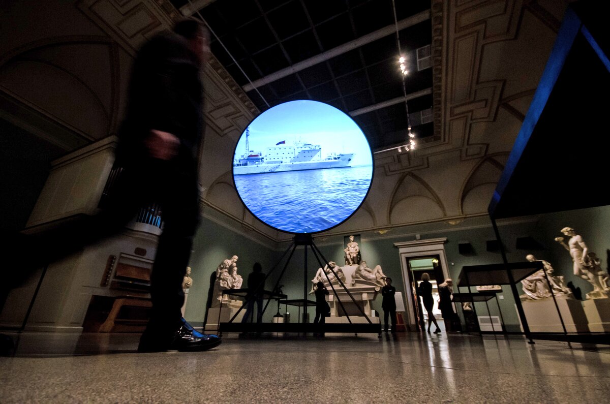 1 октября в ГМИИ имени А. С. Пушкина открылась выставка специального гостя VI Московской биеннале современного искусства – Александра Пономарева. Лейтмотивом экспозиции "Ветрувианский человек" стал одноименный перформанс художника в Арктике.