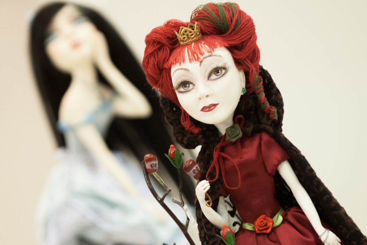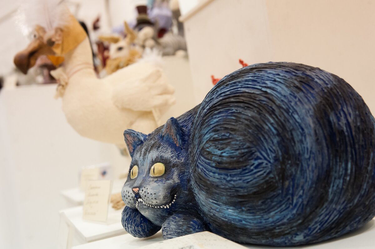 Выставка "По следам Алисы" создана по мотивам сказок Льюиса Кэрролла "Алиса в стране чудес" и "Алиса в Зазеркалье". В экспозиции - работы кукольников, которые создали Белого кролика, птицу Додо, Герцогиню, Синюю гусеницу, Шляпника и Шалтая-Болтая.