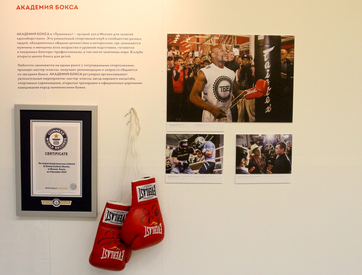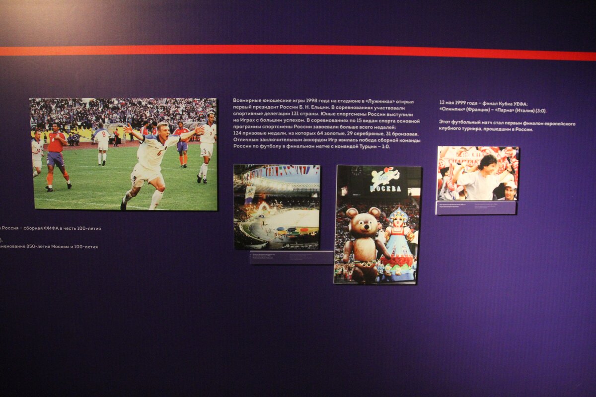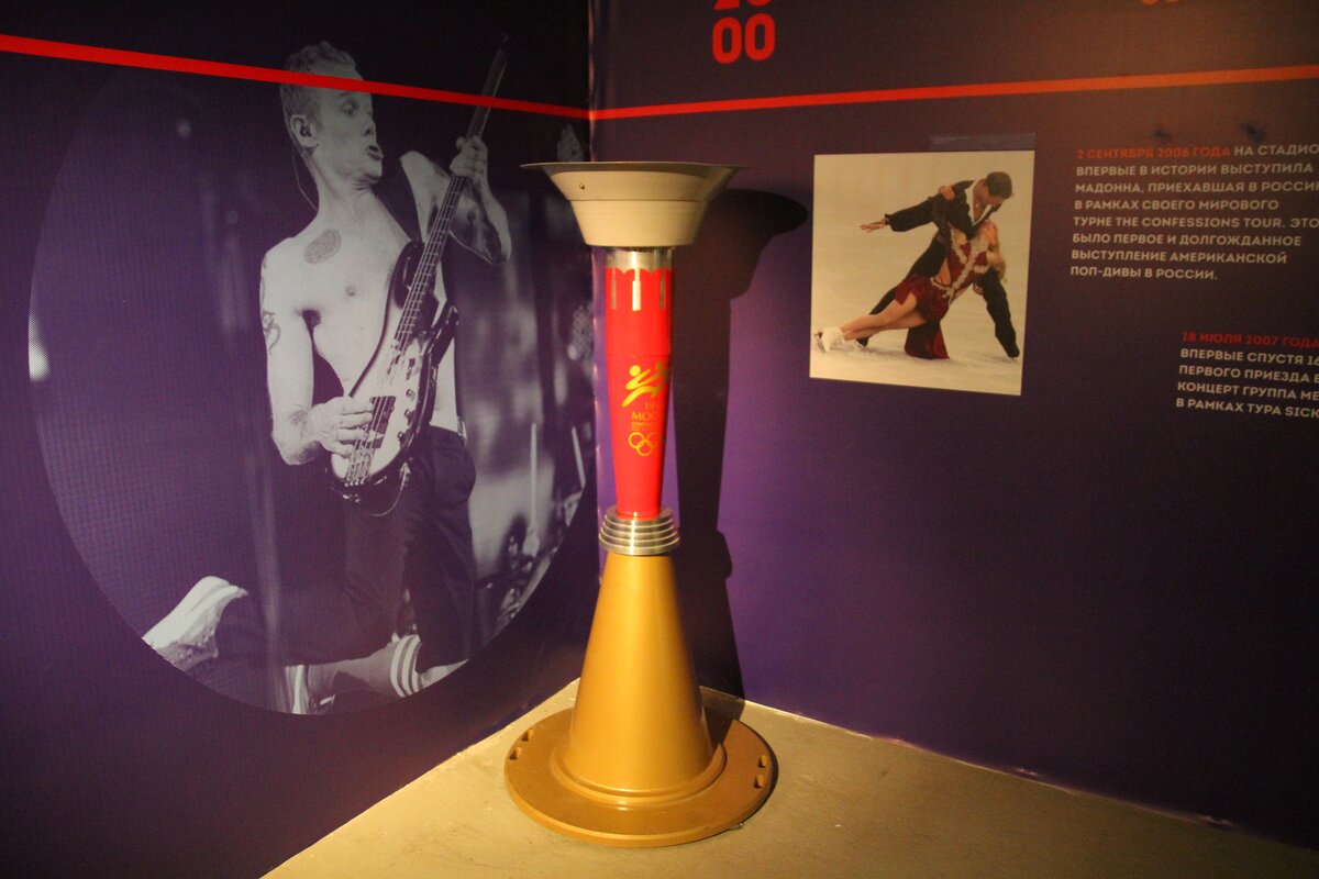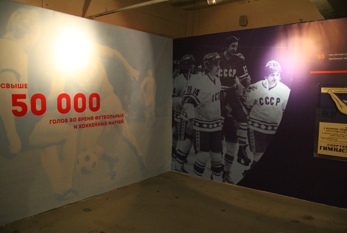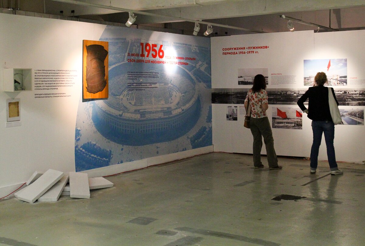 Этапы строительства "Лужников" в 1950-е на выставке соседствуют с крупнейшими событиями второй половины прошлого века, которые принимал спортивный комплекс – многочисленные спартакиады, чемпионаты мира по хоккею, волейболу, легкой атлетике, Олимпиада-80, а также крупнейшие музыкальные события – последний концерт группы "Кино" в 1990 году, выступления Madonna, Metallica, The Rolling Stones, Дюка Эллингтона, U2 и многих других.
