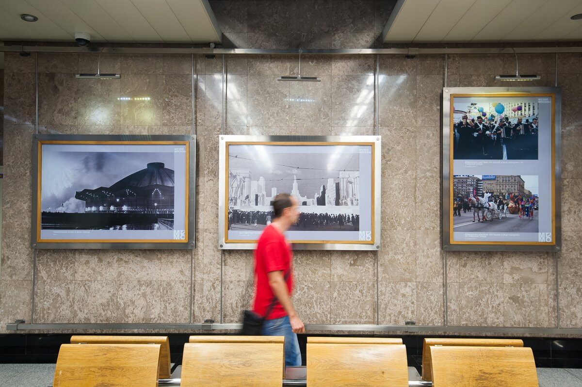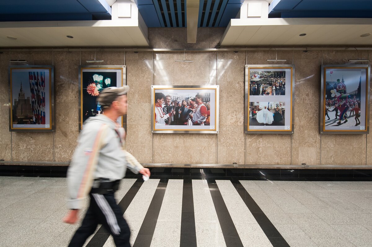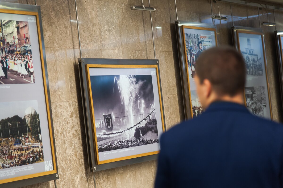 7 сентября в галерее "Метро" на станции "Выставочная" открылась фотовыставка "День Москвы. Штрихи к портрету праздника", приуроченной к 869-летию столицы. В нее вошло 30 снимков из коллекции Музея Москвы, на которых запечатлено празднование дня рождения города начиная с 1947 года.