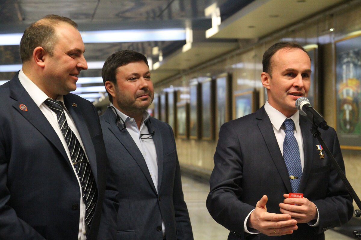 В галерее на станции Выставочная состоялось торжественное открытие фотовыставки "От «Байконура" до "Восточного", приуроченной к первому орбитальному полету человека вокруг Земли. Экспозиция выставки, подготовленная Московским метрополитеном и Роскосмосом, рассказывает посетителям о двух крупнейших космодромах, в которых соединилось прошлое, настоящее и будущее отечественной космонавтики. В церемонии открытия фотовыставки приняли участие начальник Московского метрополитена Дмитрий Пегов и директор по коммуникациями Государственной корпорации "РОСКОСМОС" Игорь Буренков.
